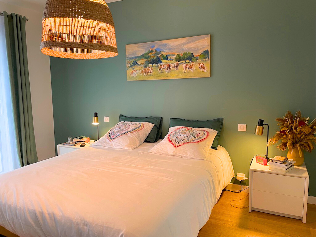 À l'étage, un grand palier avec espace bureau offrant une vue sur le traict, deux chambres ainsi qu'une salle de bains avec douche.