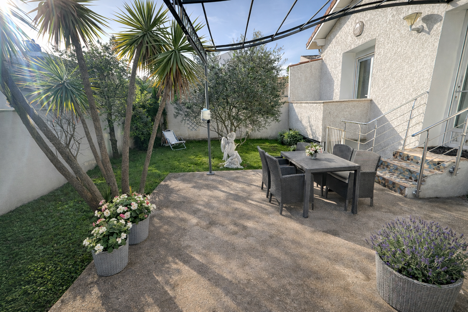 Accès direct à un jardin arrière exposé sud, sans vis-à-vis.