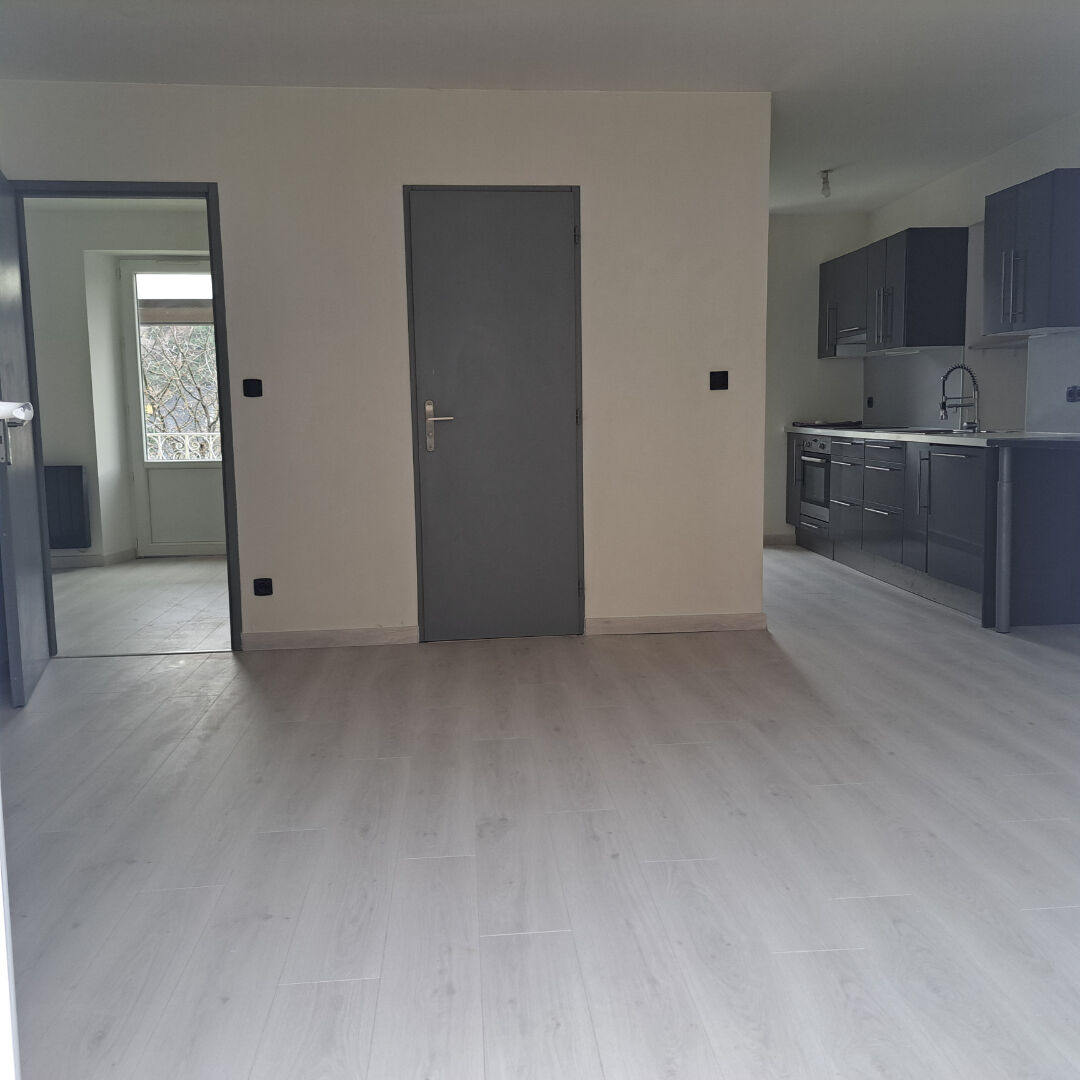 Cuisine équipée donnant sur le séjour, 1 chambre, sdb, wc.