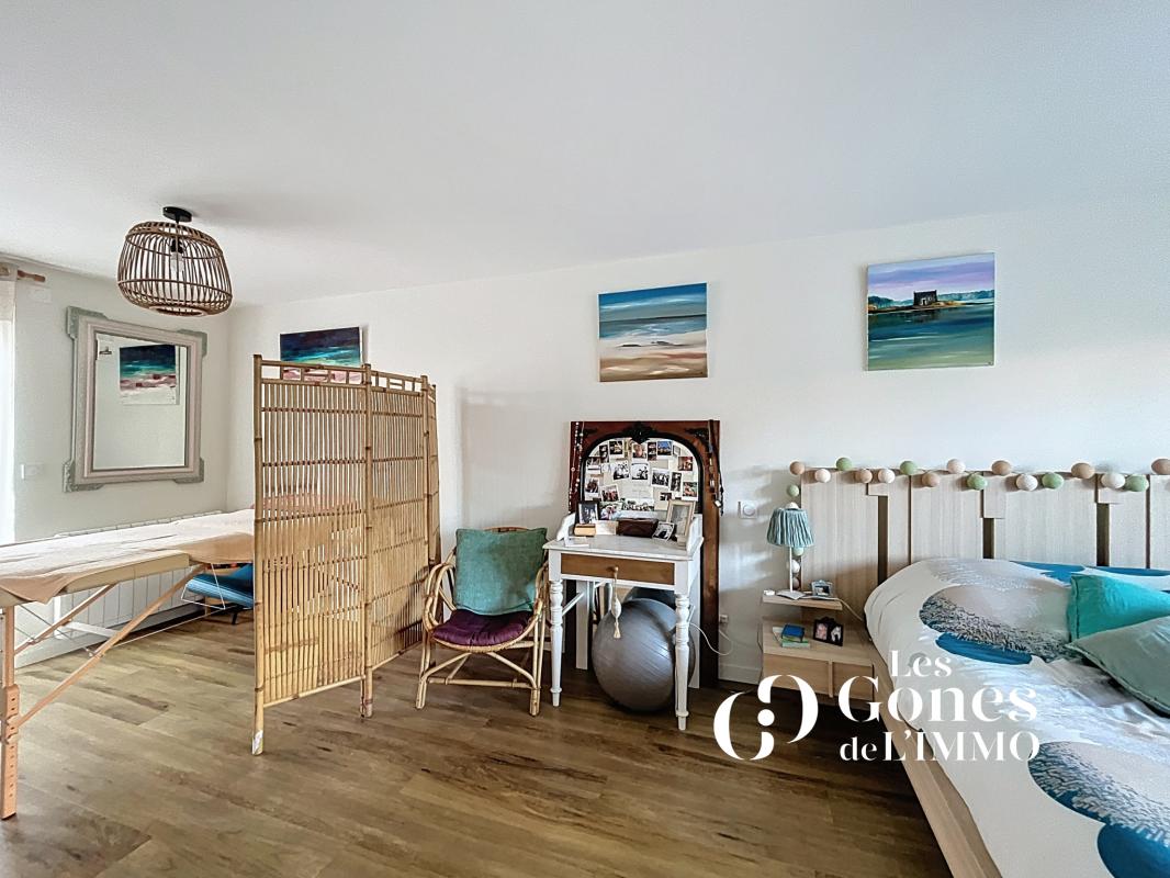 De chaque côté de cette pièce de vie, les chambres se déploient, offrant intimité et équilibre à l'ensemble. La maison compte 5 chambres, dont une suite parentale de 26 m2, ainsi que 3 salles de bain pour un confort optimal. À l'étage, deux chambres supplémentaires et une salle de bain créent un espace distinct, idéal pour enfants, invités ou bureau.