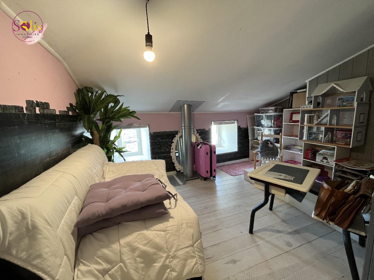 À l?étage, une chambre d?appoint en mansarde complète l?espace, idéale pour un bureau, une chambre d?enfant ou une chambre d?amis.