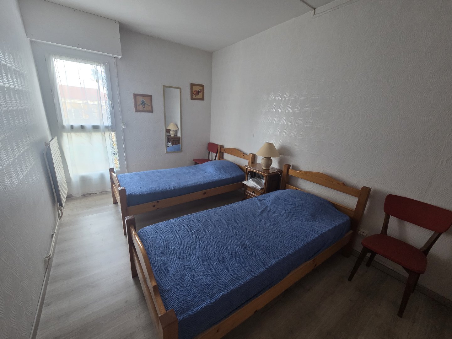 Il se compose d'une entrée, un séjour avec balcon, une cuisine équipée, deux chambres, une salle d'eau, WC séparés, cellier. Cave.