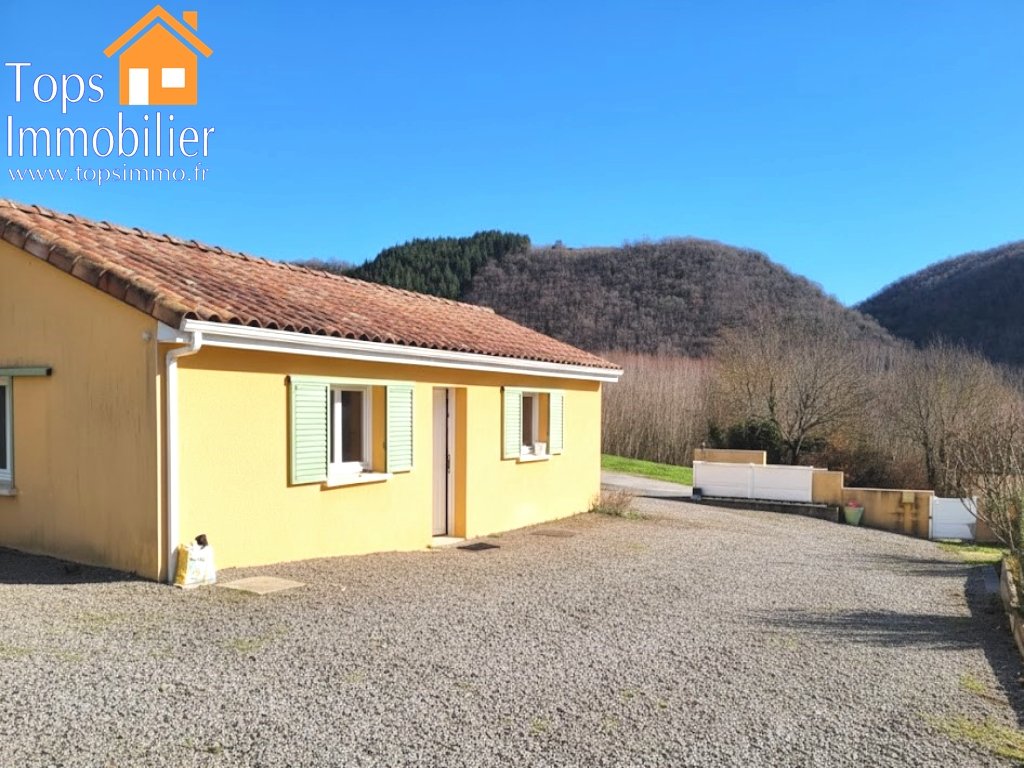 Sur les hauteurs d'un charmant village, maison de plain-pied de 120 m² offrant un bel espace de vie lumineux avec accès terrasse couverte, cuisine équipée (plan de travail en granit), cellier, 3 chambres dont une suite parentale.