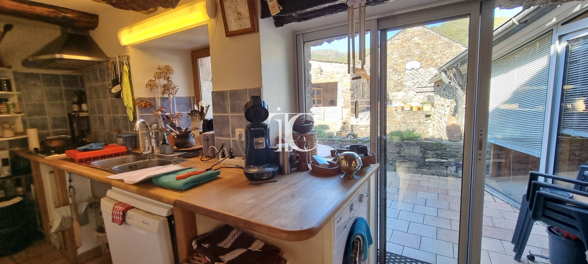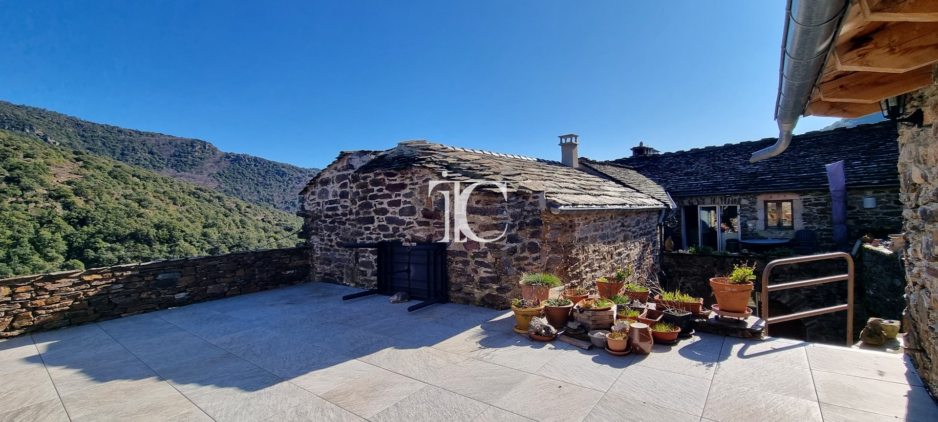 Actuellement divisée en deux appartements, la maison peut facilement être réunie en une seule habitation. Sa grande terrasse avec vue panoramique sur les paysages cévenols constitue un véritable atout.