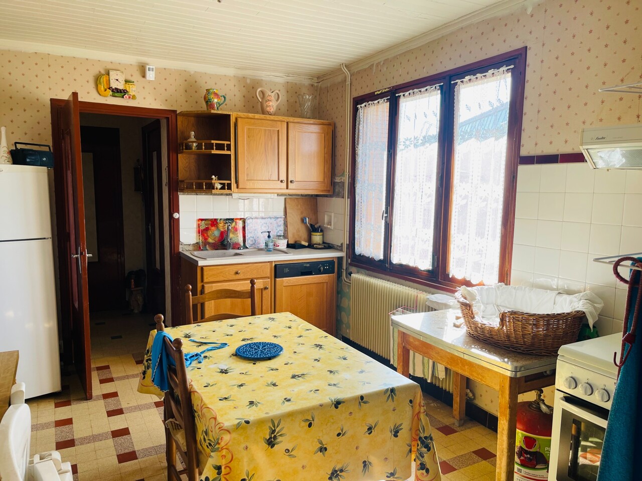 La première bâtisse comprend un garage de 24 m², une surface habitable d’environ 82 m² au rez-de-chaussée avec cuisine, séjour, chambre, salle d’eau et WC, ainsi qu’une chambre de 17 m² et une salle d’eau à l’étage. Environ 80 m² de combles sont aménageables. La maison dispose également d’un jardin.
