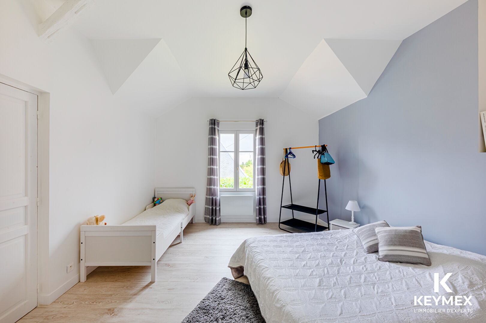 * À l'étage, l'espace nuit se compose de TROIS CHAMBRES chaleureuses, d'une salle de bain et d'une salle d'eau. Accessible par deux escaliers, l'étage bénéficie d'une circulation fluide et entièrement communicante.
