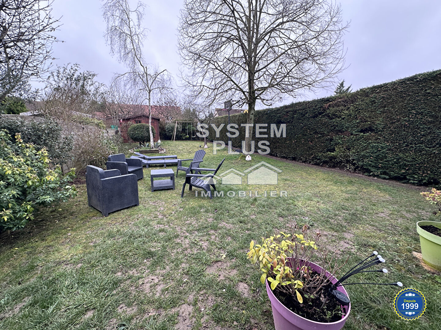 Jardin clos de 329m² avec abri de jardin.
