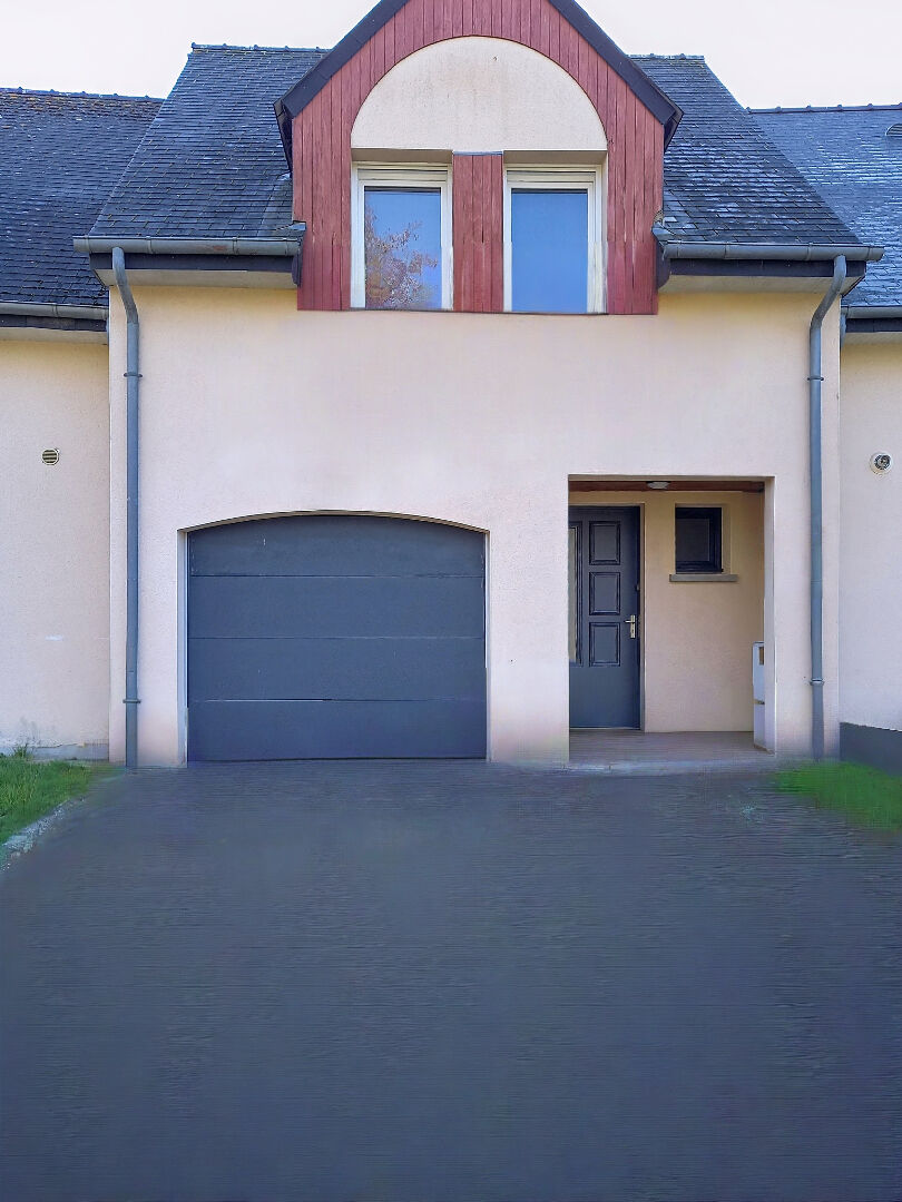 Au rez-de-chaussée vous trouverez une entrée, un séjour + cuisine ouverte aménagée/équipée d'environ 28 m², un WC disposant d'un lave main et un placard (chauffe eau), garage fermé.