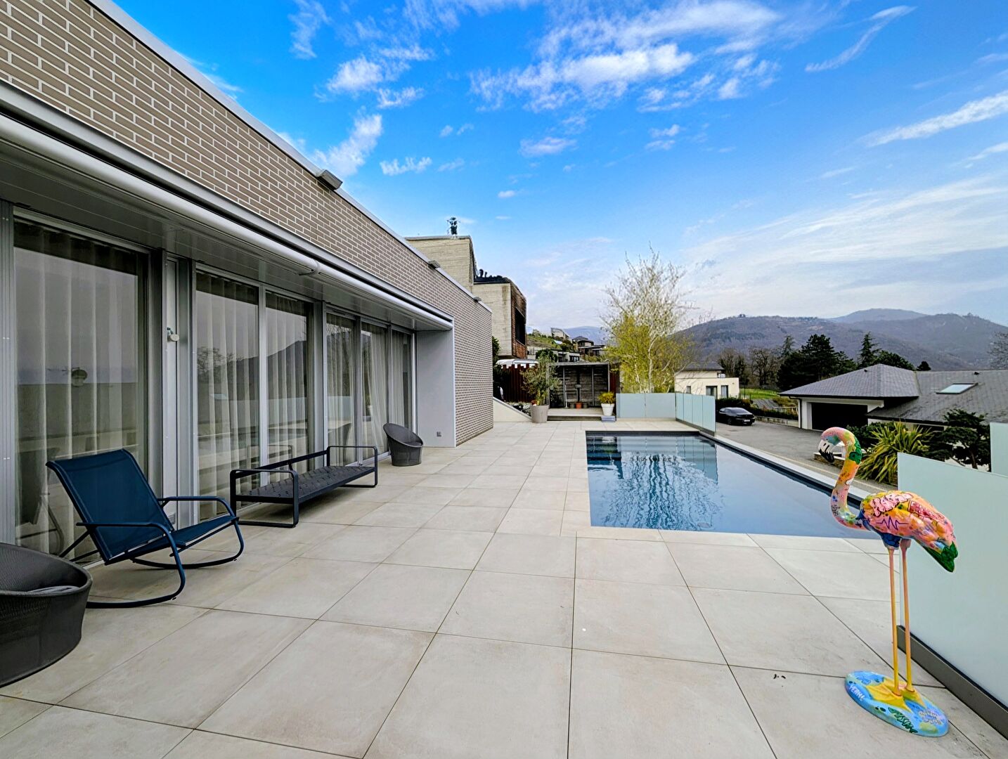 À seulement 8 minutes du centre-ville de Chambéry, sur les hauteurs, cette villa contemporaine de 200 m² (177 m² habitables) bénéficie d'une vue dégagée sur les montagnes environnantes, dans un environnement calme et privilégié.