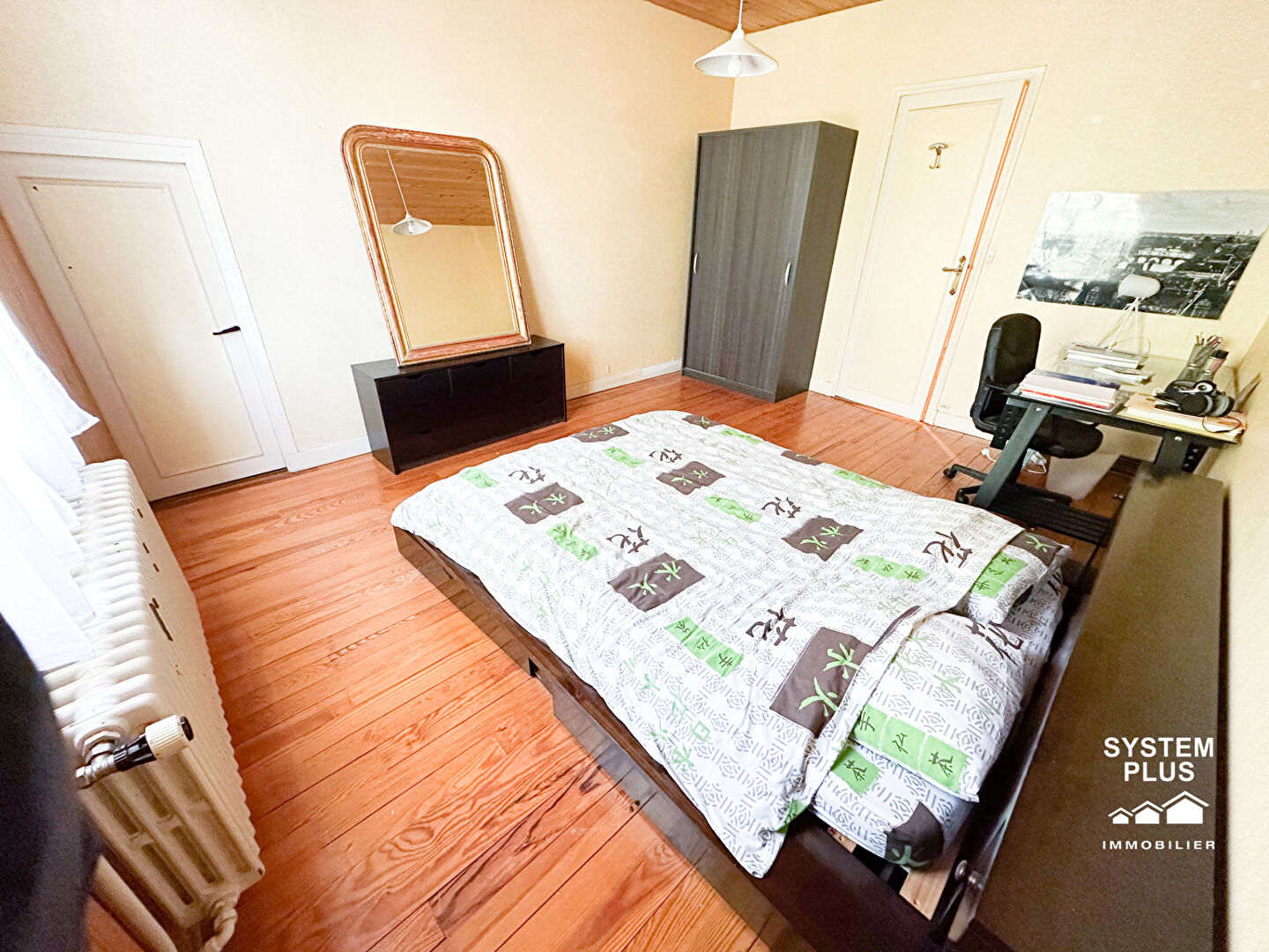 Agencement modulable à l'étage : Une mezzanine lumineuse dessert deux grandes chambres avec espaces dressing/bureau en sous-pente, ainsi qu'un espace bureau polyvalent donnant accès à de nombreux rangements (greniers).