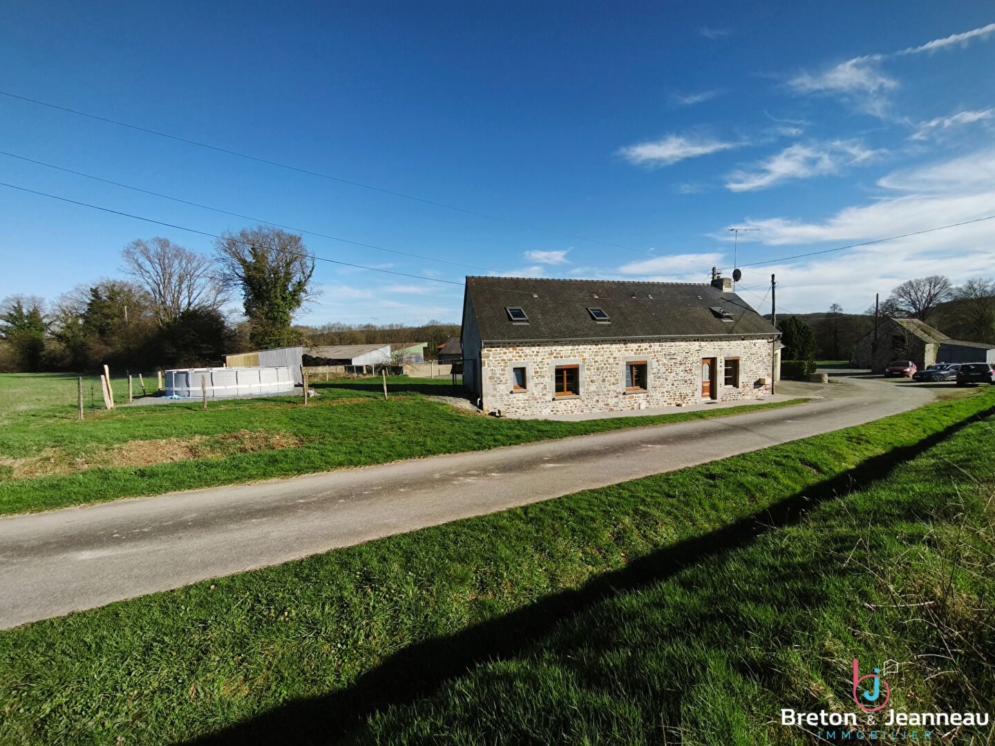 - d'une maison d'habitation en pierres et en parfait état. Vous découvrirez au rez-de-chaussée : un séjour salon lumineux avec une cheminée insert, une cuisine ouverte aménagée et équipée, un bureau qui peut être transformé en chambre, une salle de bain avec baignoire et douche, des WC suspendus séparés. Un double garage avec portes électriques. A l'étage, 3 chambres mansardées ainsi qu'une chambre avec une petite pièce pouvant faire office de dressing. Possibilité de créer une suite parentale à l'étage. (Croquis d'implantation sur simple demande)