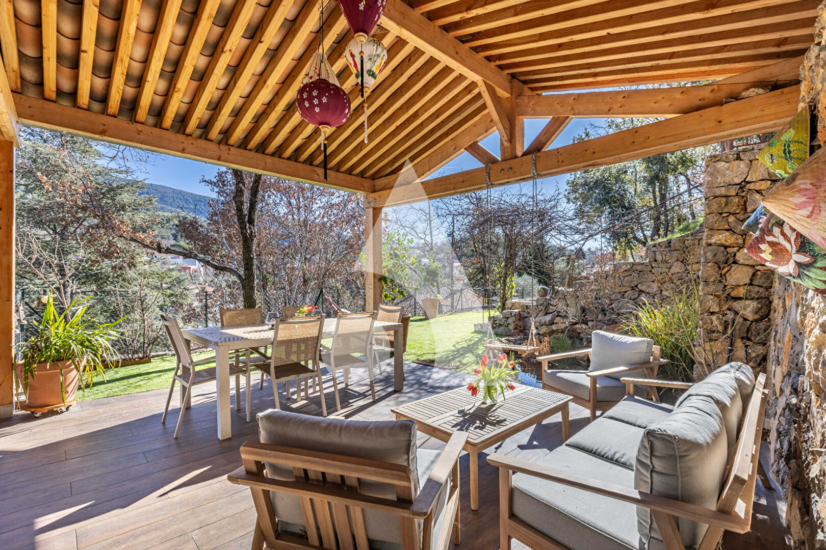 Érigée sur un terrain de près de 2 000 m², la propriété est une invitation à la vie en plein air. Entre l'espace boisé et la piscine parfaitement intégrée, le jardin dialogue avec la vue et profite d'une excellente exposition.