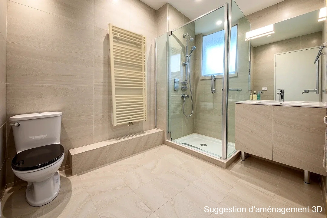 Le logement comprend également une chambre spacieuse de 12 m² et une salle d'eau aux normes PMR.