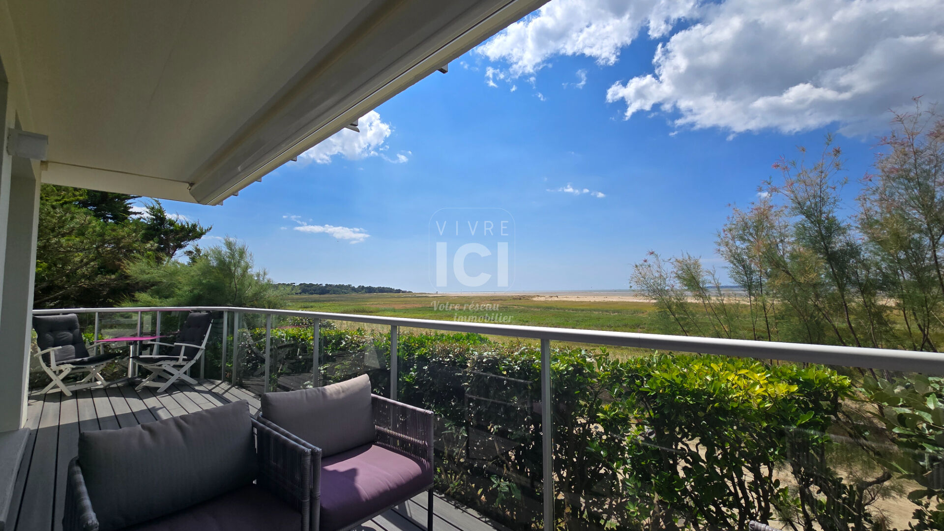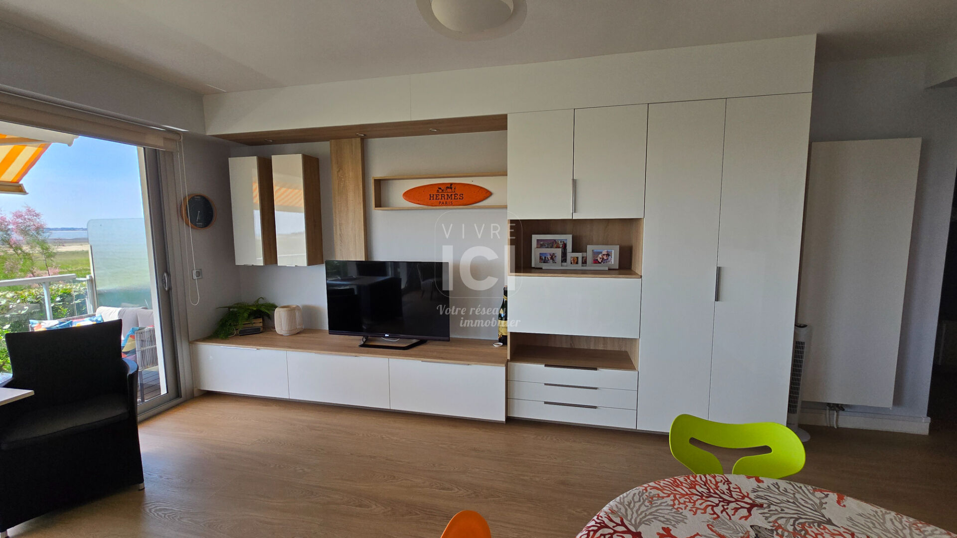 FACE MER - Au sein d'une résidence de standing, à proximité des commerces, magnifique 3 pièces ! Hall d'entrée, vaste salon - séjour exposé sud ouest avec vue mer, cuisine aménagée équipée, deux chambres (placard), salle d'eau avec douche à l'italienne, wc ind. Grande terrasse avec store banne.