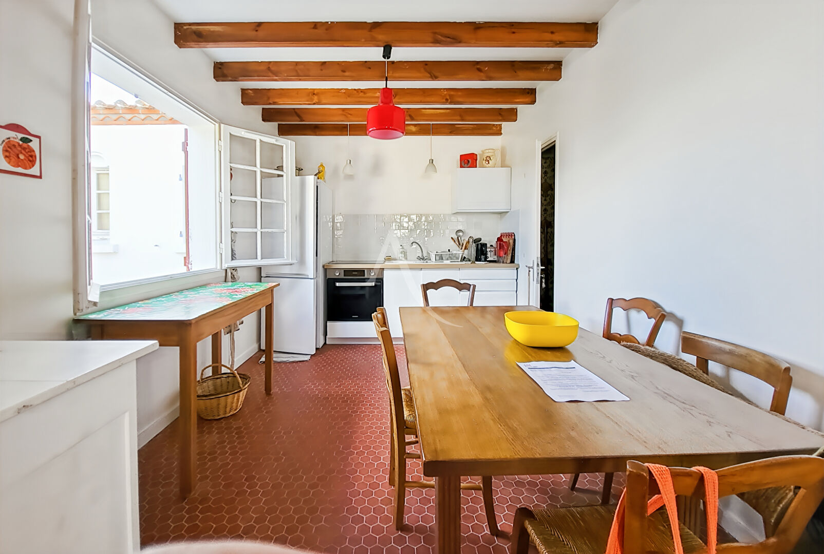 Quartier des Tonnelles. À proximité de la Plage et de la forêt domaniale, charmant pavillon de Type 3 offrant un séjour avec poêle à bois, une cuisine ouverte sur le séjour, buanderie, salle d'eau et WC indépendants, deux chambres.