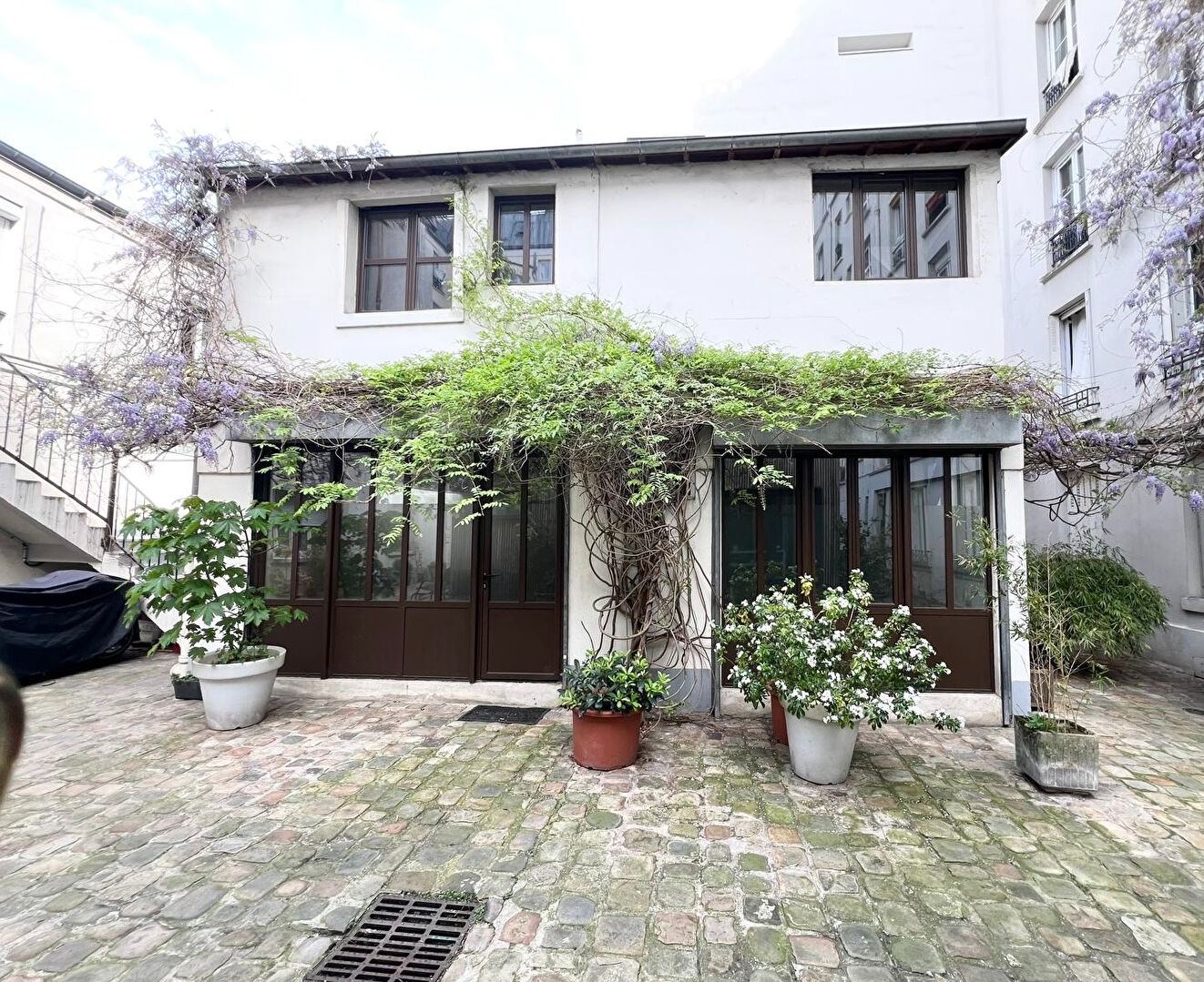 Paris 18ème - Métro Marx Dormoy - L'IMMOBILIER PAR CHARLY vous propose au coeur du quartier et à 2 min du marché couvert de la Chapelle cette maison en copropriété de 138,87 m2 habitable (155m2 au sol) au charme d'atelier offrant un cadre de vie calme et préservé. Lumineuse et chaleureuse, elle séduit par son authenticité et son atmosphère conviviale.