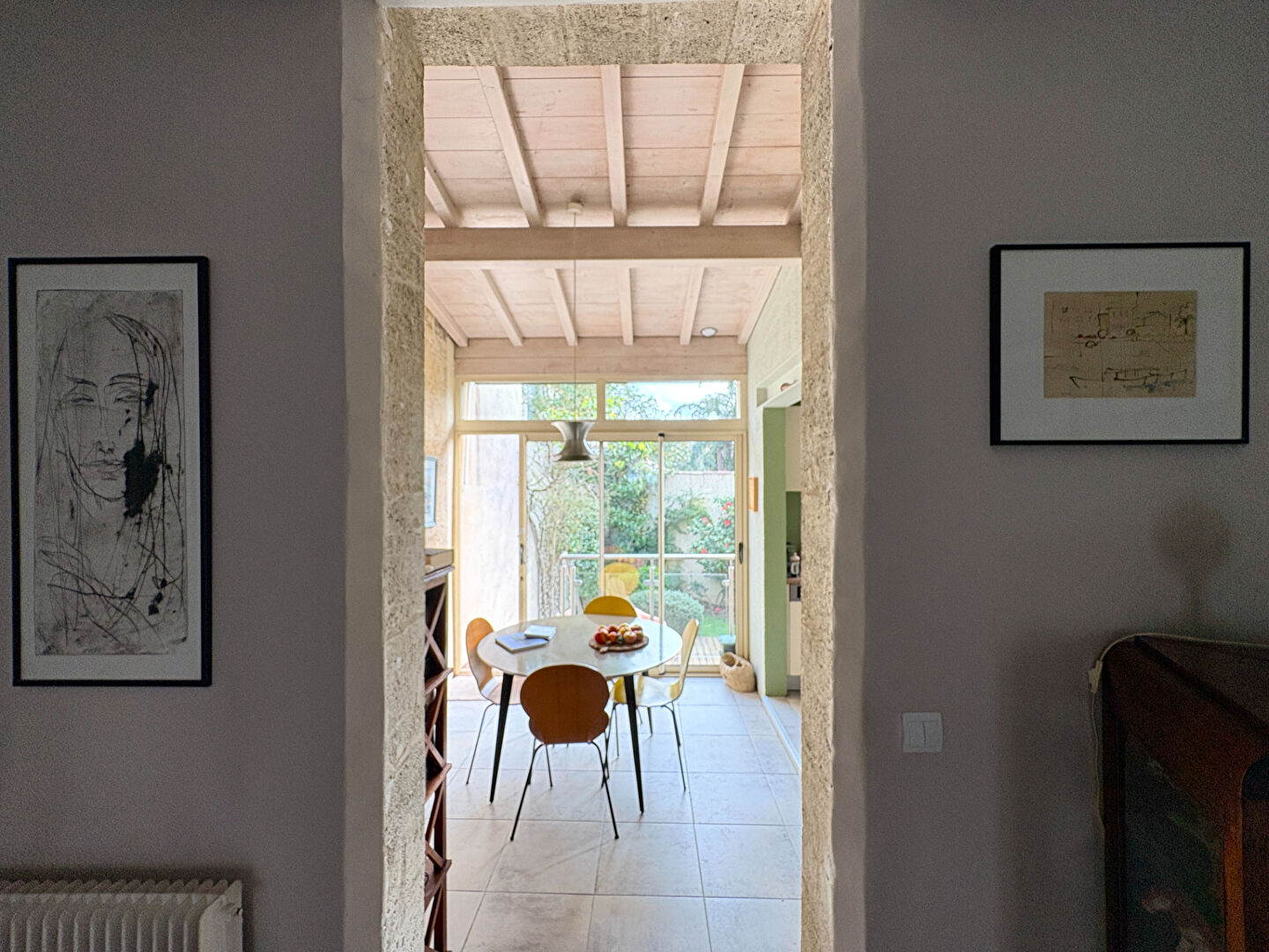Pierre apparente, volumes confortables, jardin lumineux.