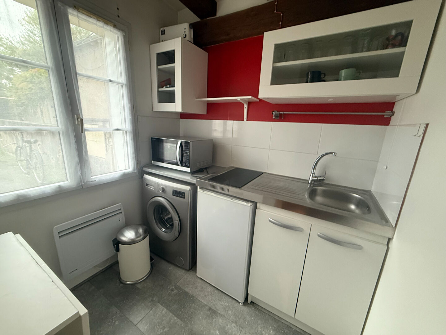 Tours, quartier Lamartine , dans petite copropriété , appartement très actuel, vendu meublé comprenant: une pièce principale , une cuisine indépendante aménagée et équipée (frigo, four, machine à laver le linge , micro-onde et meubles), une salle d'eau avec WC .Dans cour possibilité garer moto .Charges annuelles: 900Euro .