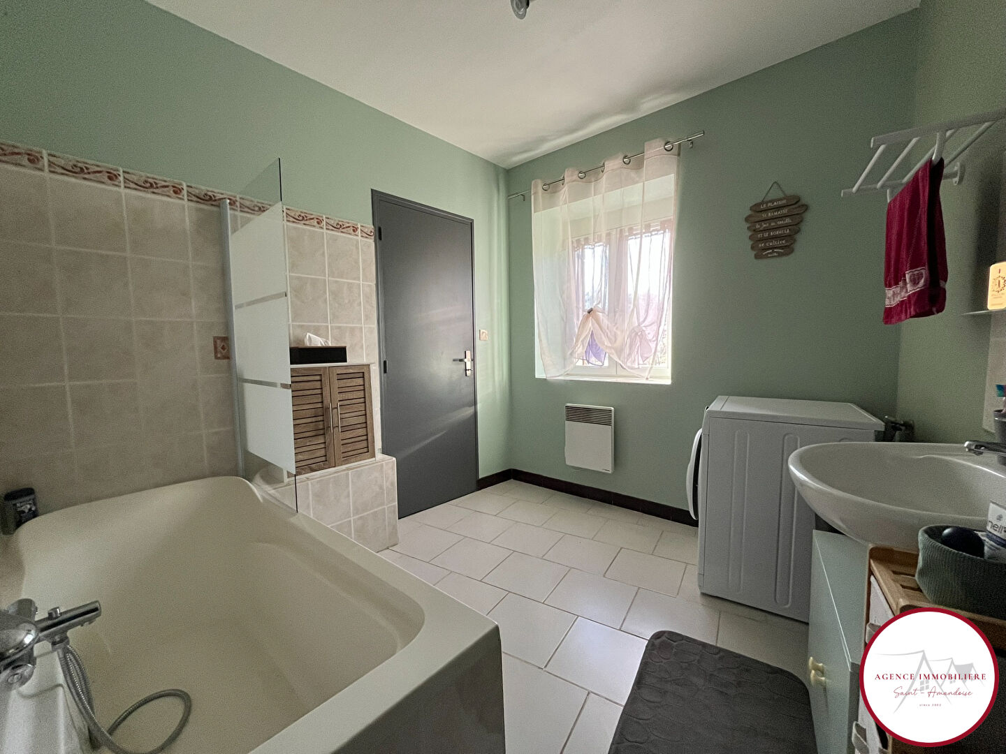 À l'étage, une pièce palière dessert deux chambres, dont une en enfilade (idéale pour un espace enfant, un bureau ou un dressing), ainsi qu'une seconde salle de bains avec WC.