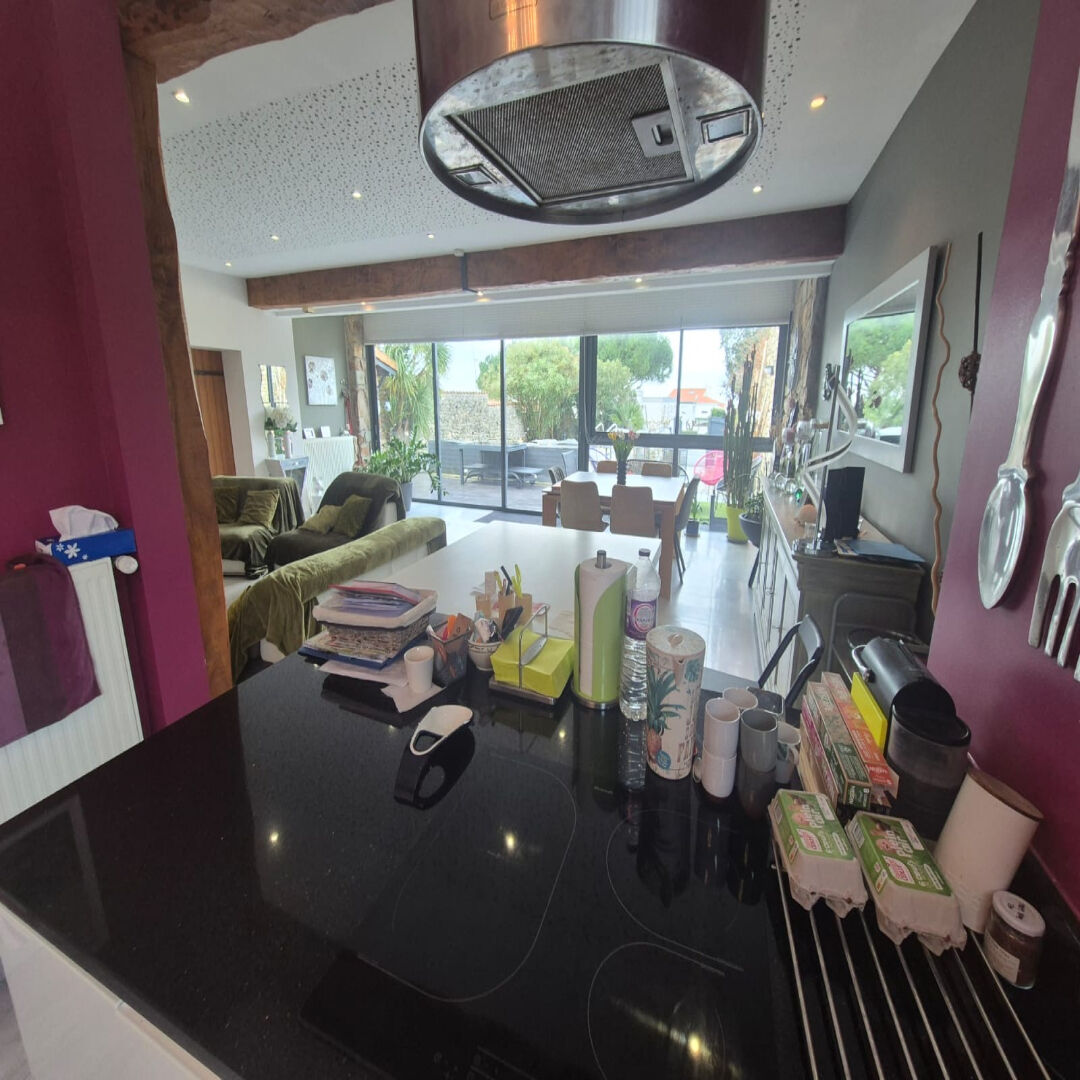 À seulement 200 m de la plage, beaux volumes pour cette Villa d'environ 190 m² offrant belle pièce de réception de 65 m2 cuisine US ouvrant sur terrasse, 2 chambres + bureau de plain pied, 1 salle d'eau, 1 salle de bains, WC, cuisine d'été. Etage : mezzanine, 2 chambres, salle de bains, salle d'eau, WC. Grand sous-sol. Piscine, terrain clos de 604 m².