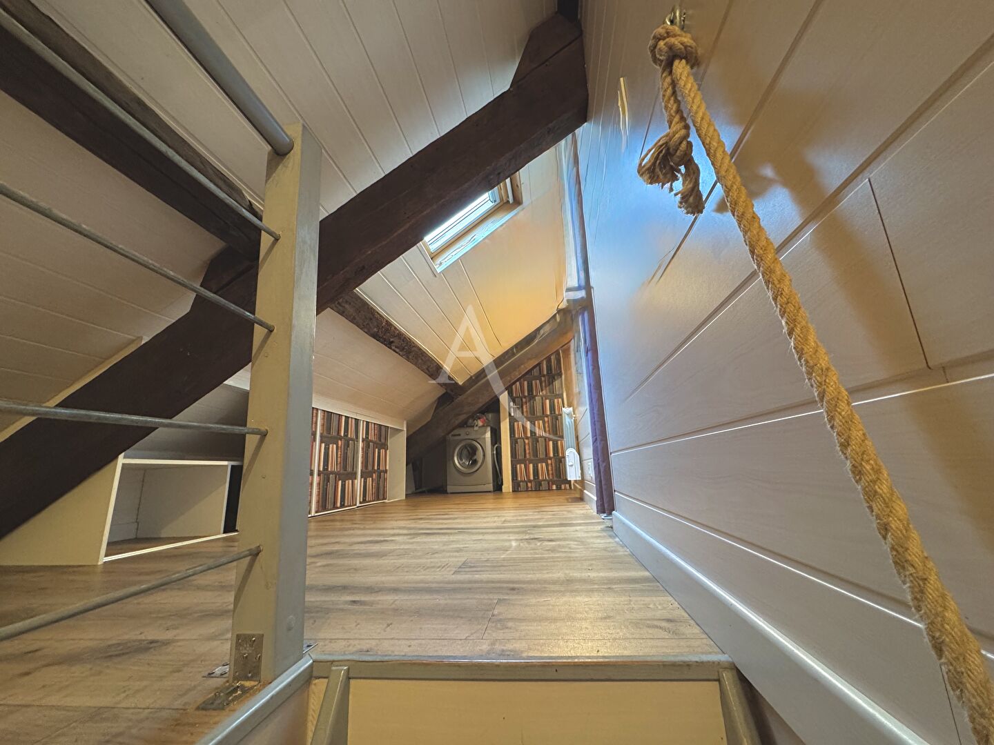 À proximité immédiate de l'Eglise Notre-Dame-de-Bon-Port, rue Mazagran, au 4ème et dernier étage d'un immeuble ancien, ce T2 de 53 m² habitables (32 m2 Carrez) offre de beaux volumes parfaitement exploités. Il se compose d'une entrée, d'un salon-séjour, d'une cuisine équipée séparée avec possibilité d'ouverture, d'une salle de bains, d'une chambre en duplex, et d'un WC.