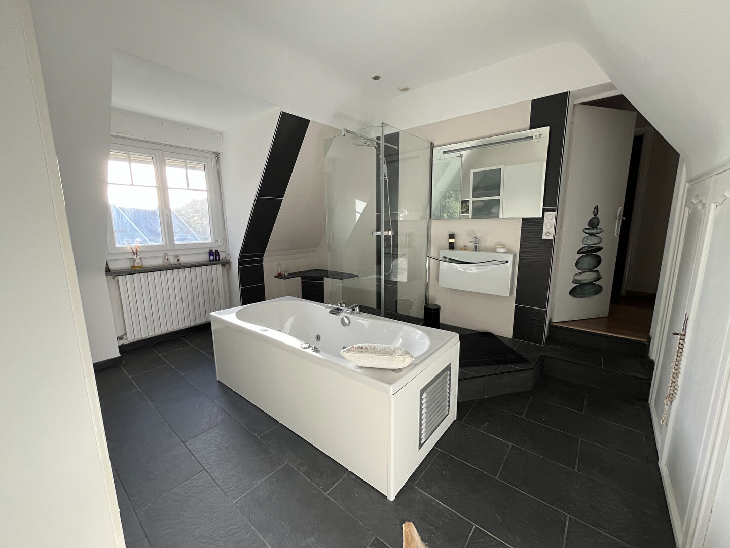 Édifiée sur une parcelle de 1 226 m² au calme absolu, la propriété dispose également d'un sous-sol complet et d'un espace indépendant idéal pour une activité professionnelle .