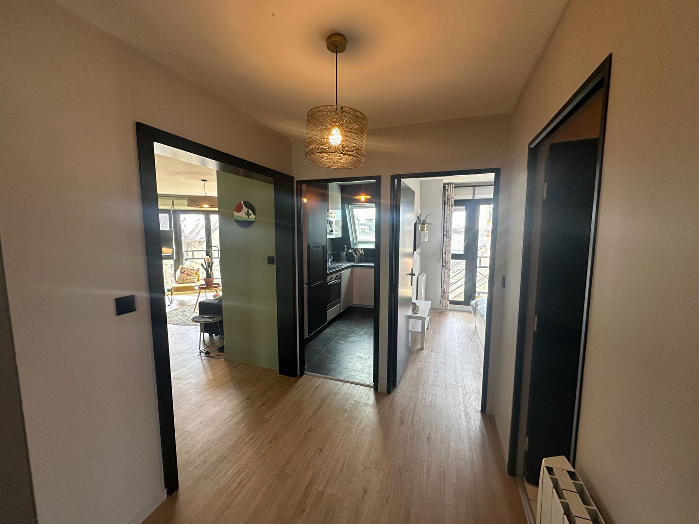 RESIDENCE "LES HESPERIDES"ENTREE-PLACARD- CHAMBRE AVEC PLACARD ET PETIT BALCON-CUSINE AMENAGEE/EQUIPEE- SEJOUR (AVEC BALCON)- SDE-WCCAVE