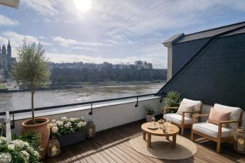 Au dernier étage d'une résidence de standing avec ascenseur, découvrez un appartement offrant une vue imprenable sur la Maine et la majestueuse cathédrale Saint-Maurice d'Angers.