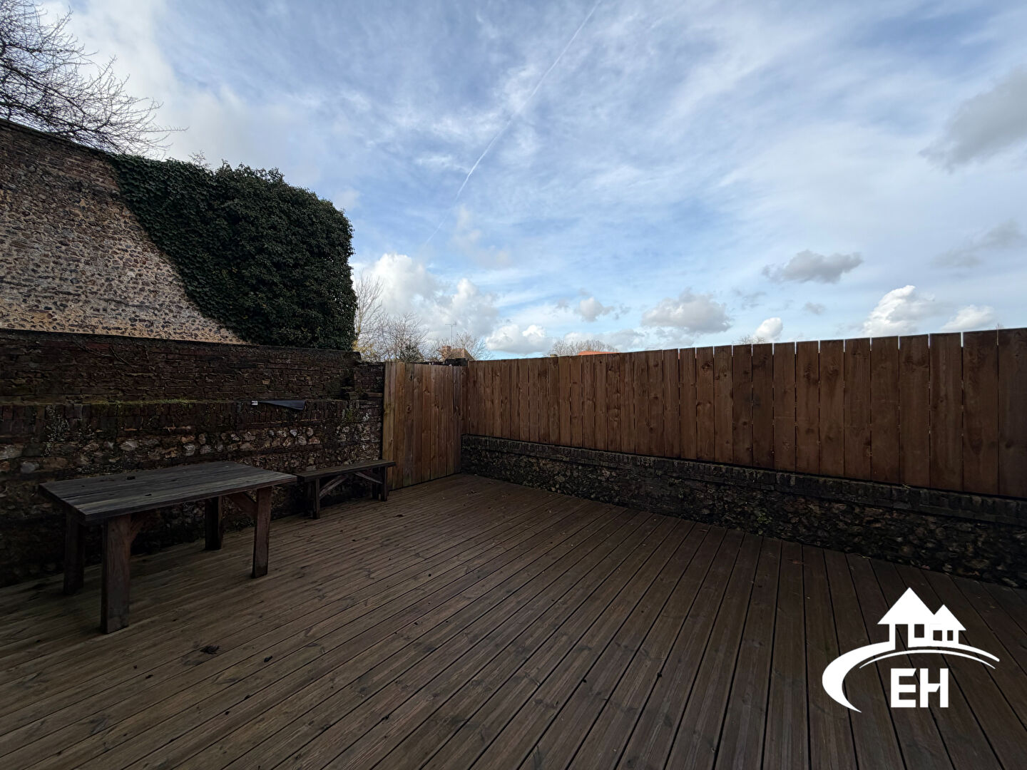 À l'arrière, une agréable courette permet de profiter d'un extérieur sans contrainte d'entretien.