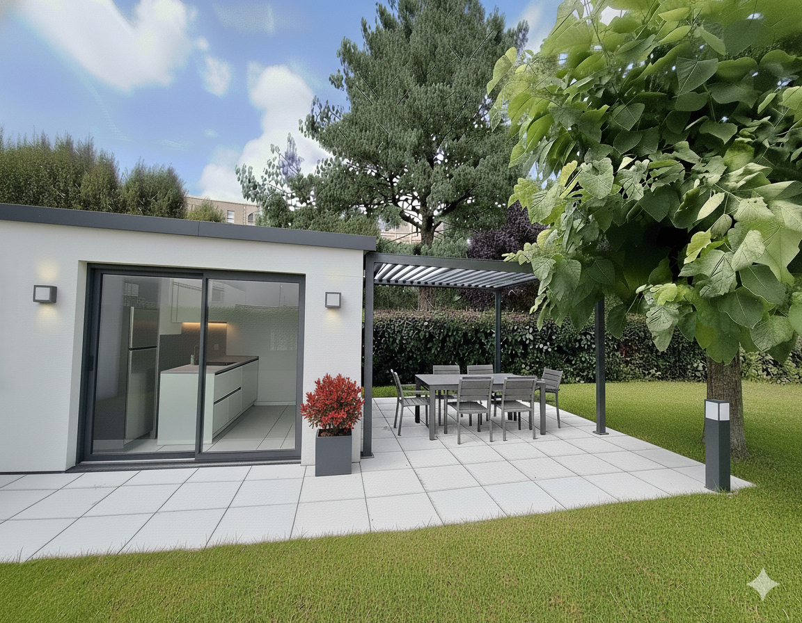 Un autre projet que vous pourriez envisager, est de réaliser une nouvelle construction à l'arrière de la maison existante, en vue d'y loger un proche, parent(s), enfant(s) et ce, afin de conserver cette proximité familiale qui vous est chère. Cette nouvelle construction pourrait également être mise à profit dans le cadre d'un investissement locatif. Vous aurez sans cela, l'opportunité d'optimiser tout l'espace disponible en extérieur pour pouvoir réaliser ultérieurement un agrandissement de l'existant (terrasse, véranda), construire garage(s)/carport(s) pour vos véhicules à abriter, aménager des espaces verts pour les amateurs de nature, créer une cuisine d'été, piscine pour profiter des belles journées ensoleillées... (sous réserve des autorisations administratives et de la faisabilité de votre projet par un professionnel).