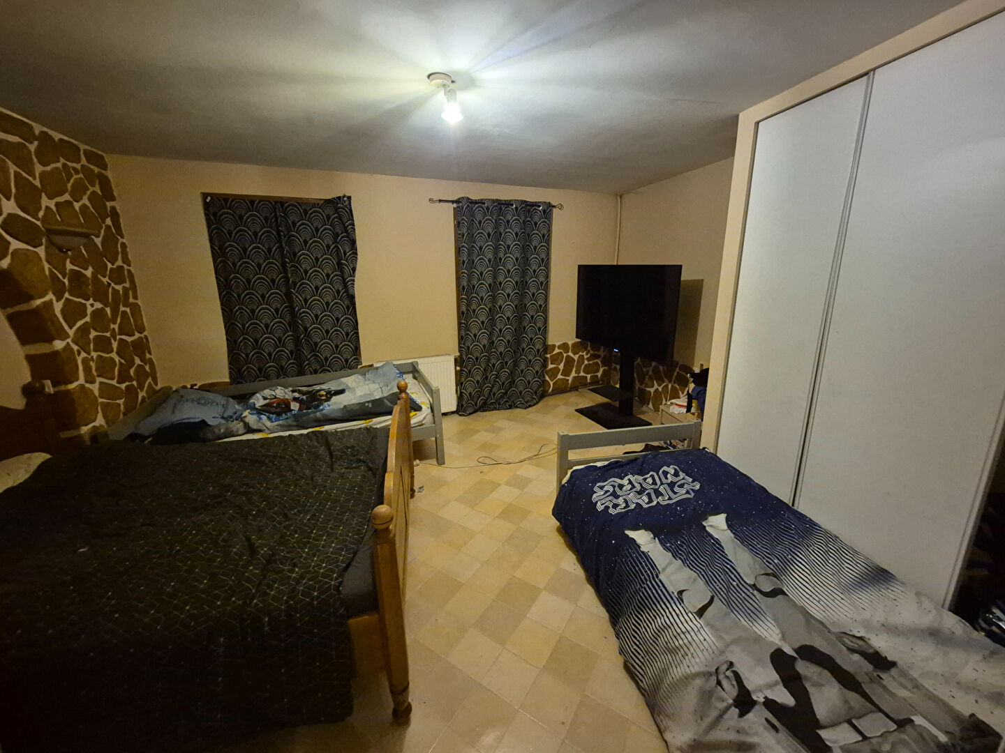 L'étage comprend un palier desservant 2 chambres et un accès à la 3 ème chambre aménagée dans les combles.