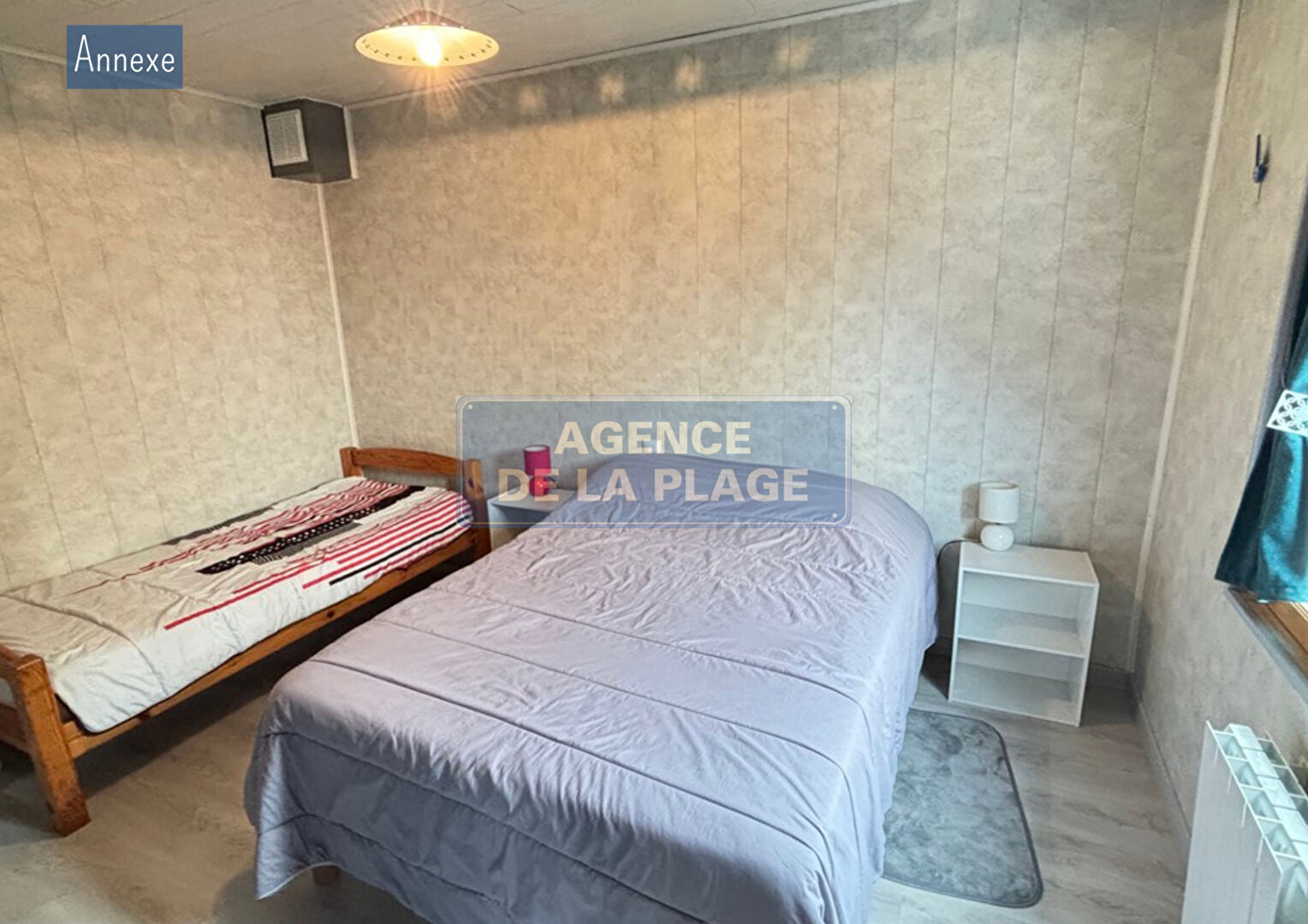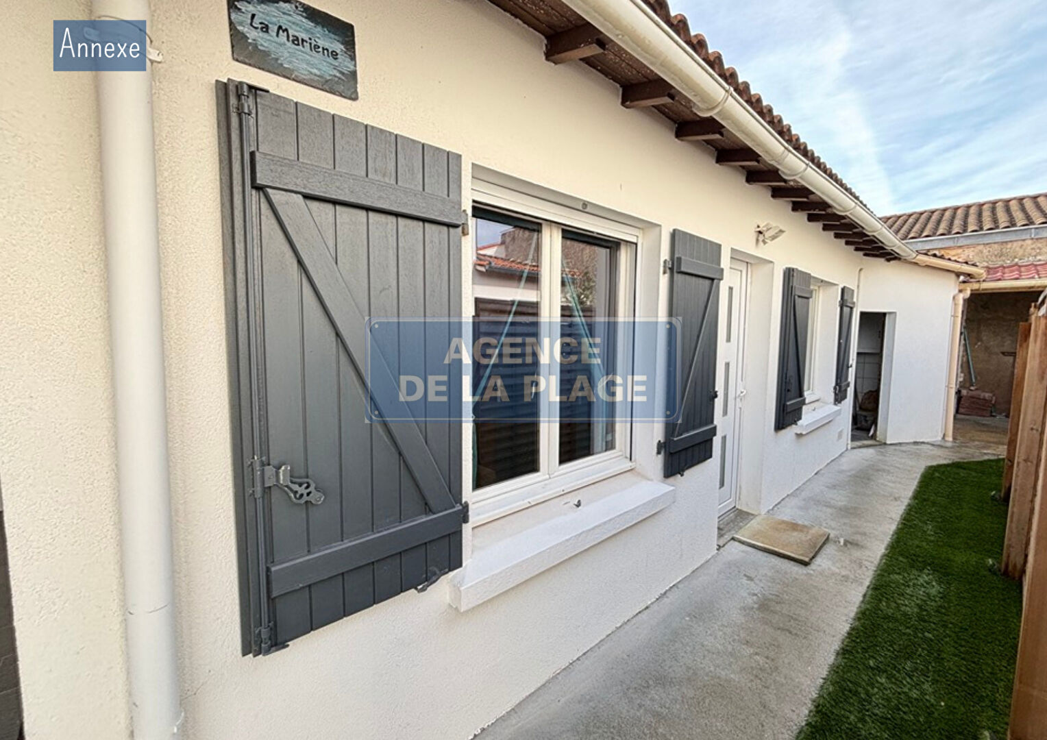Une annexe de 27 m², reliée par un préau, offre deux chambres supplémentaires et une salle d'eau avec toilettes.