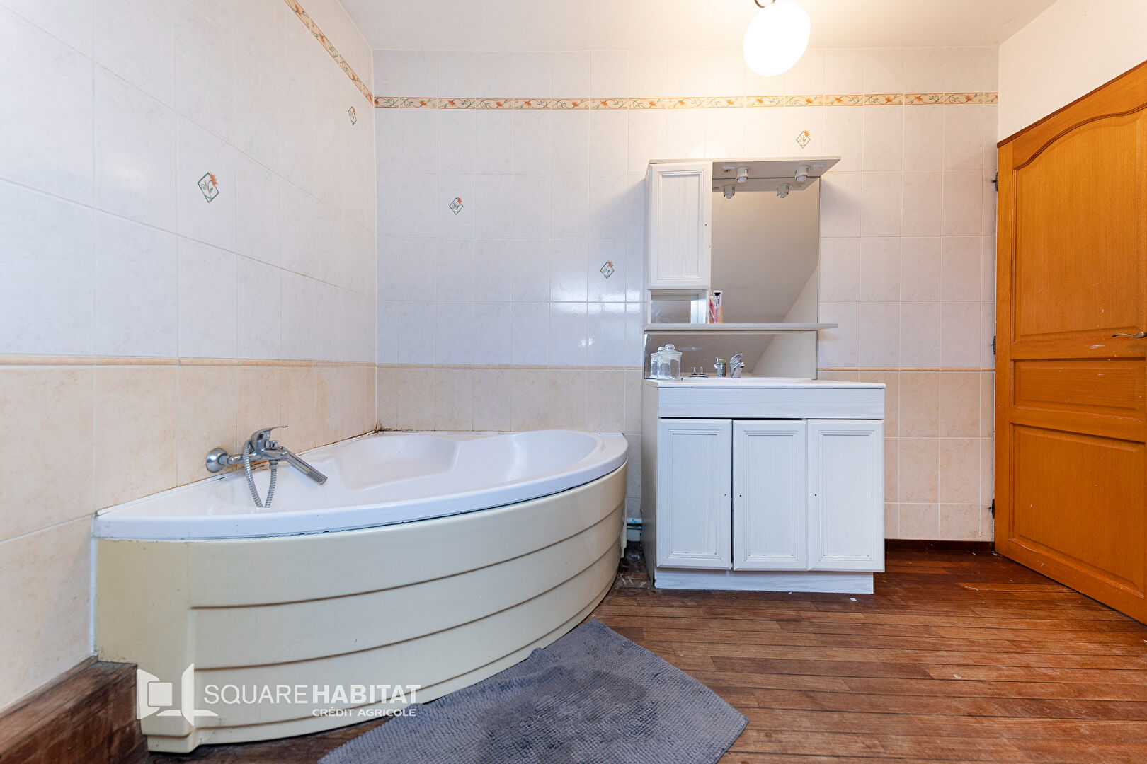 À l'étage : grand palier desservant 2 chambres et une grande salle de bain avec baignoire et WC.