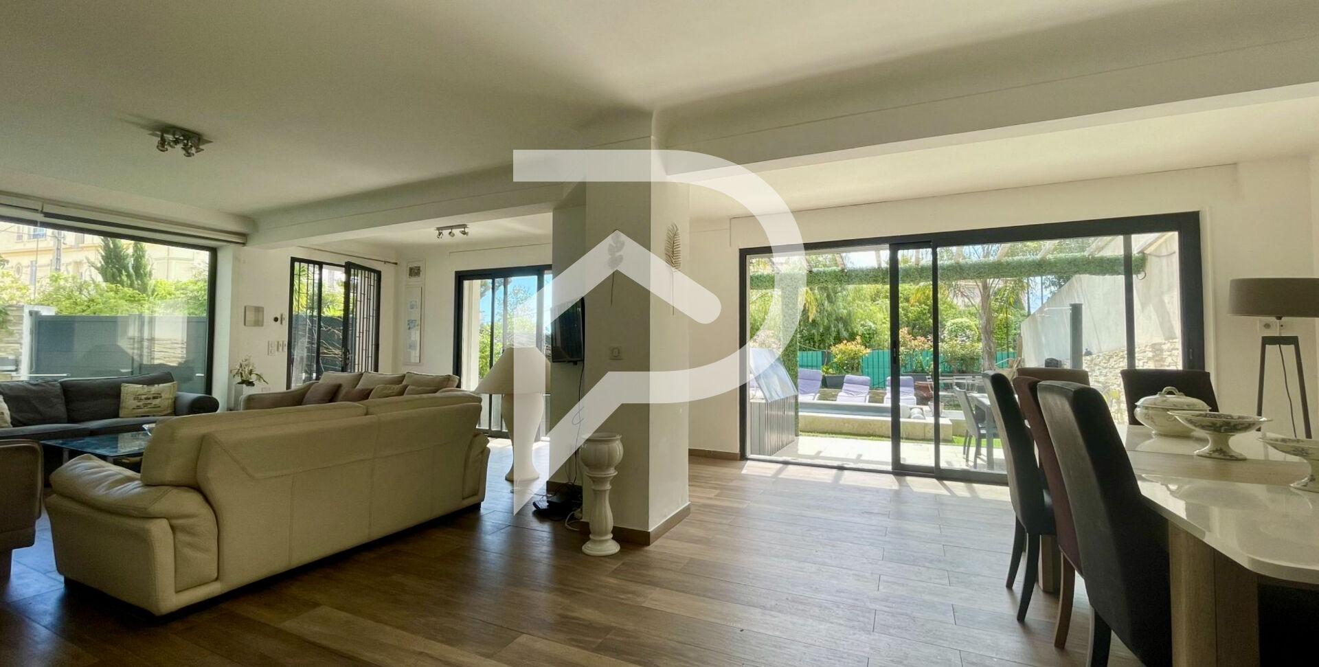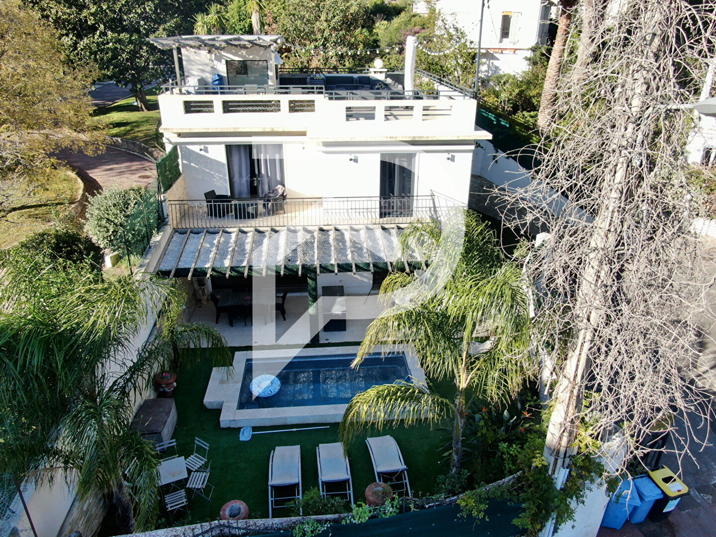 Magnifique villa indépendante contemporaine de 208m² rénovée avec piscine et toit terrasse de 80m2 avec vue mer située proche du square Méro à 15mn à pied du centre-ville de Cannes.