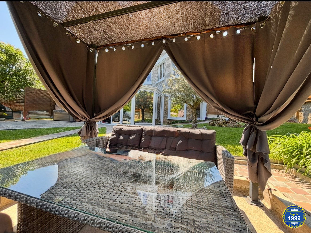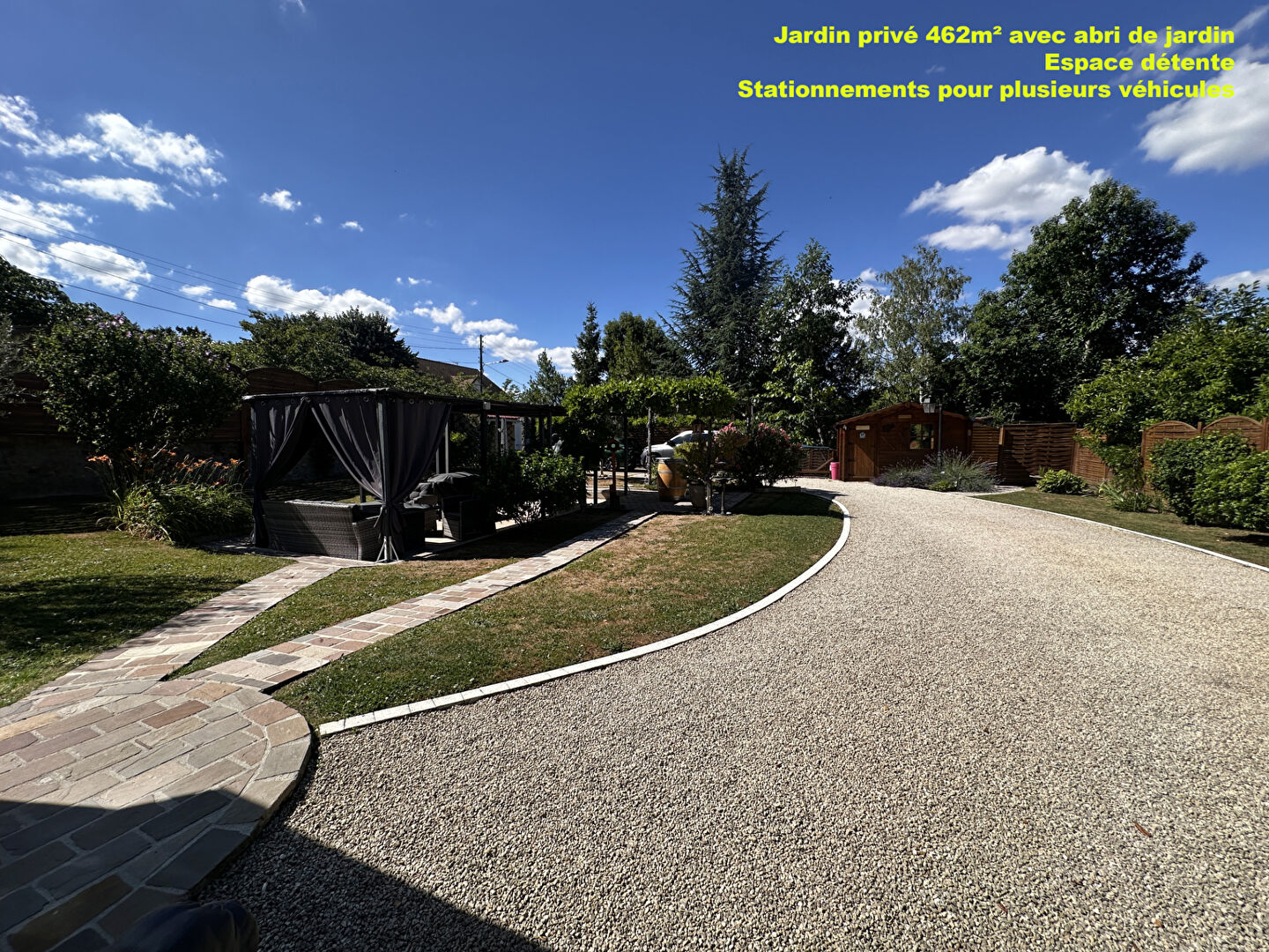 Cet appartement bénéficiant de son entrée privative avec son jardin de 462m², abri de jardin, terrasse-pergola et possibilité de stationner plusieurs véhicules.
