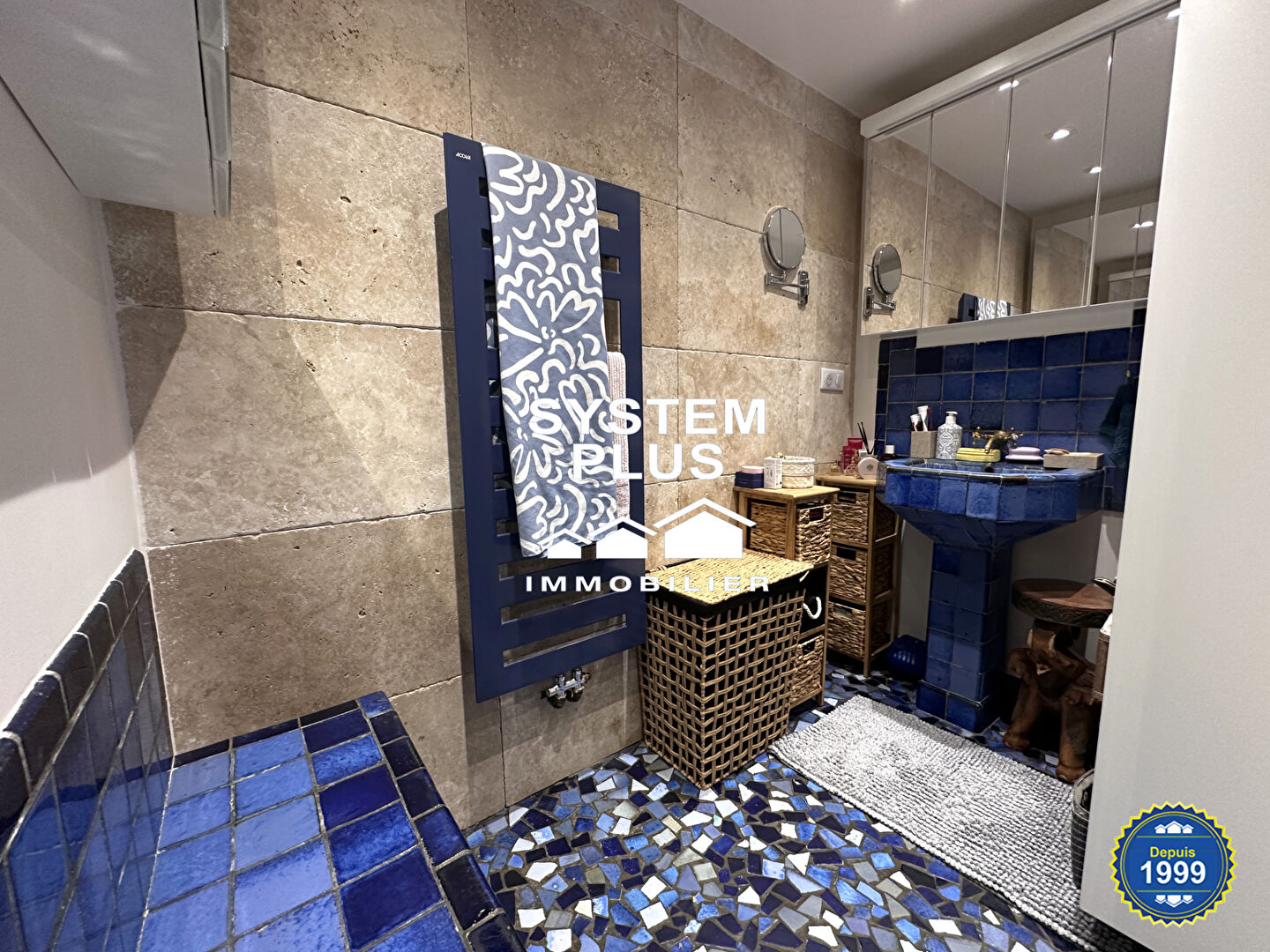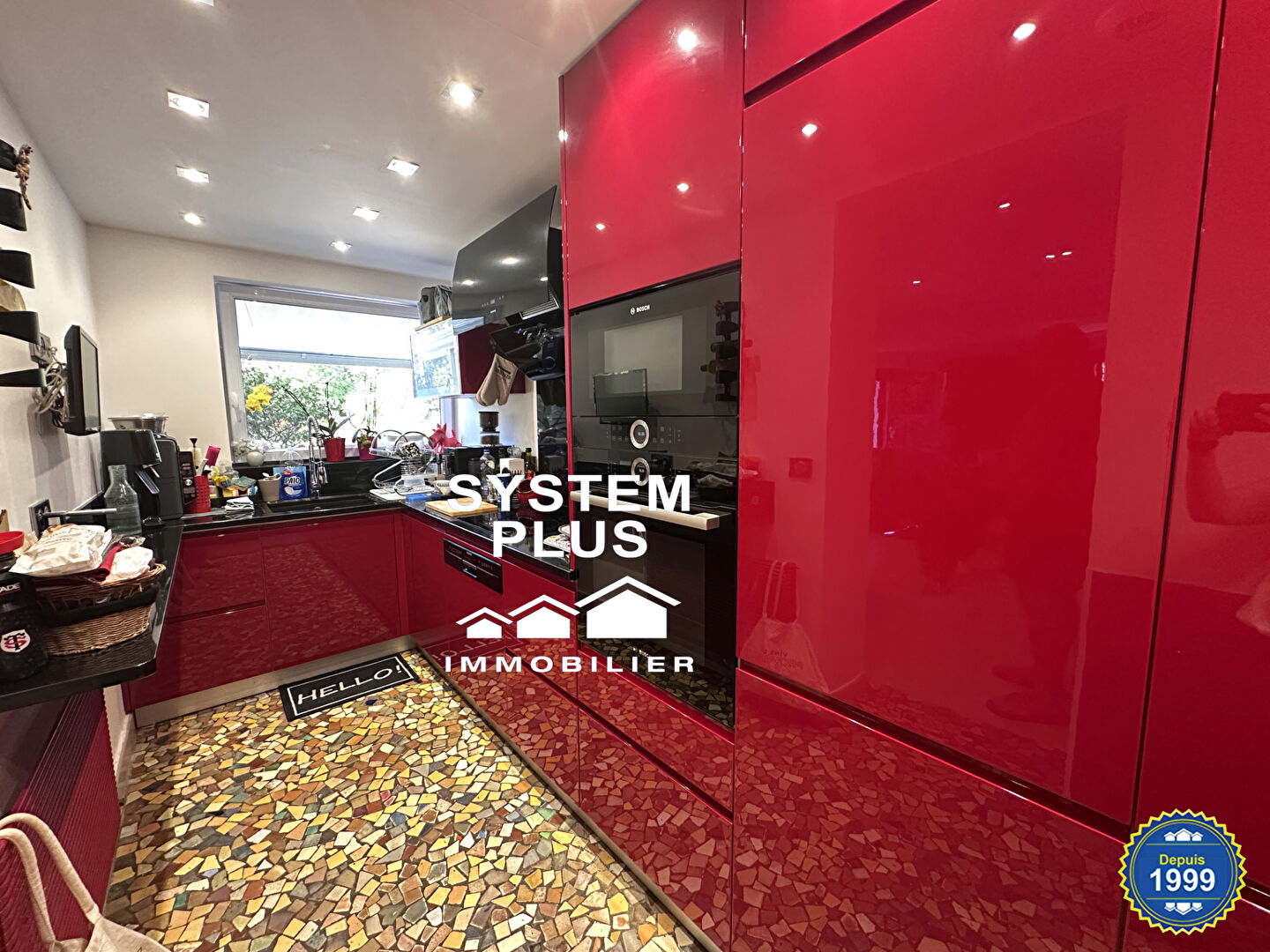 A découvrir un appartement de 112m² situé en rez-de-jardin intégralement refait et composé d'une entrée (bel espace véranda) donnant sur séjour, espace bureau, cuisine équipée séparée, buanderie, cave, couloir avec rangements et desservant un espace point d'eau et dressing, belle chambre avec salle d'eau, wc séparés.