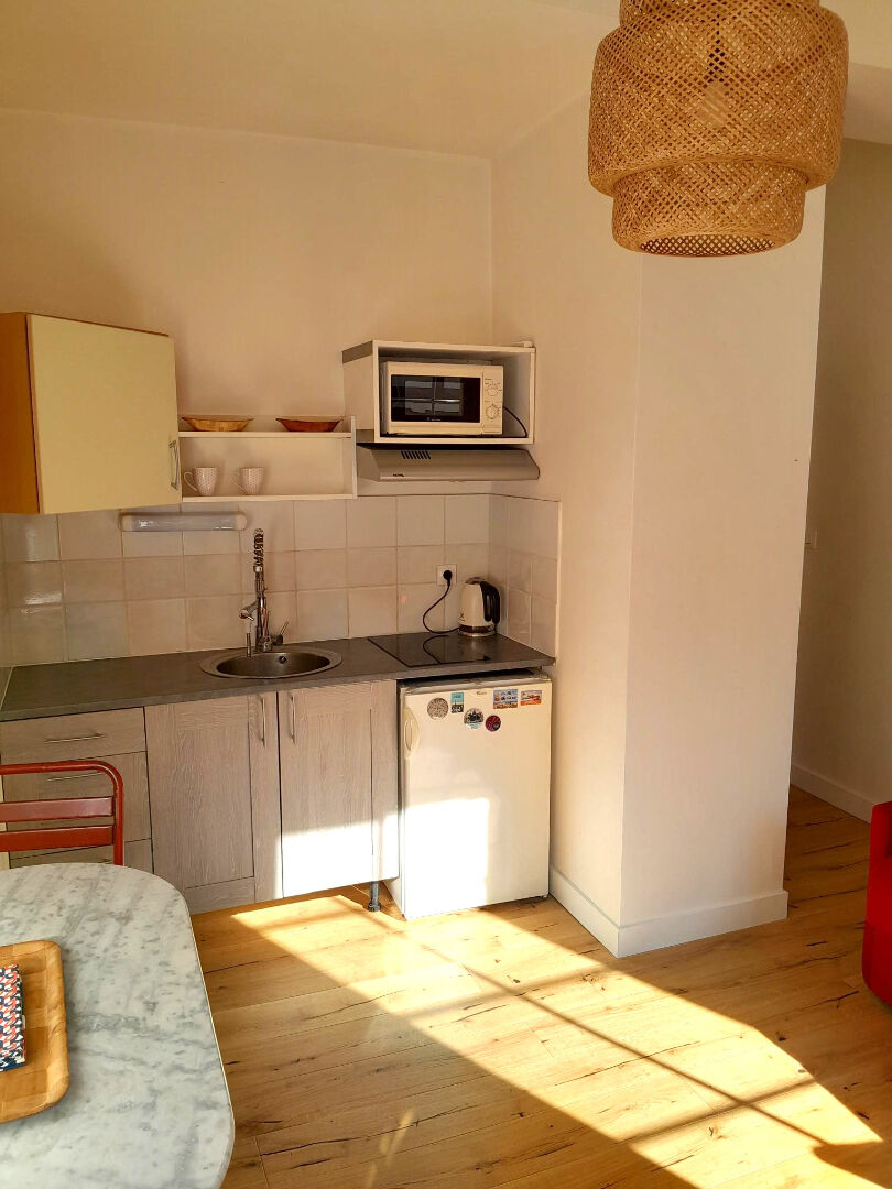 Baigné de soleil , avec son exposition sud et deux belles ouvertures, ce joli studio astucieusement agencé vous propose une entrée, salon avec coin cuisine aménagée et équipée, placard, salle d'eau avec toilettes.