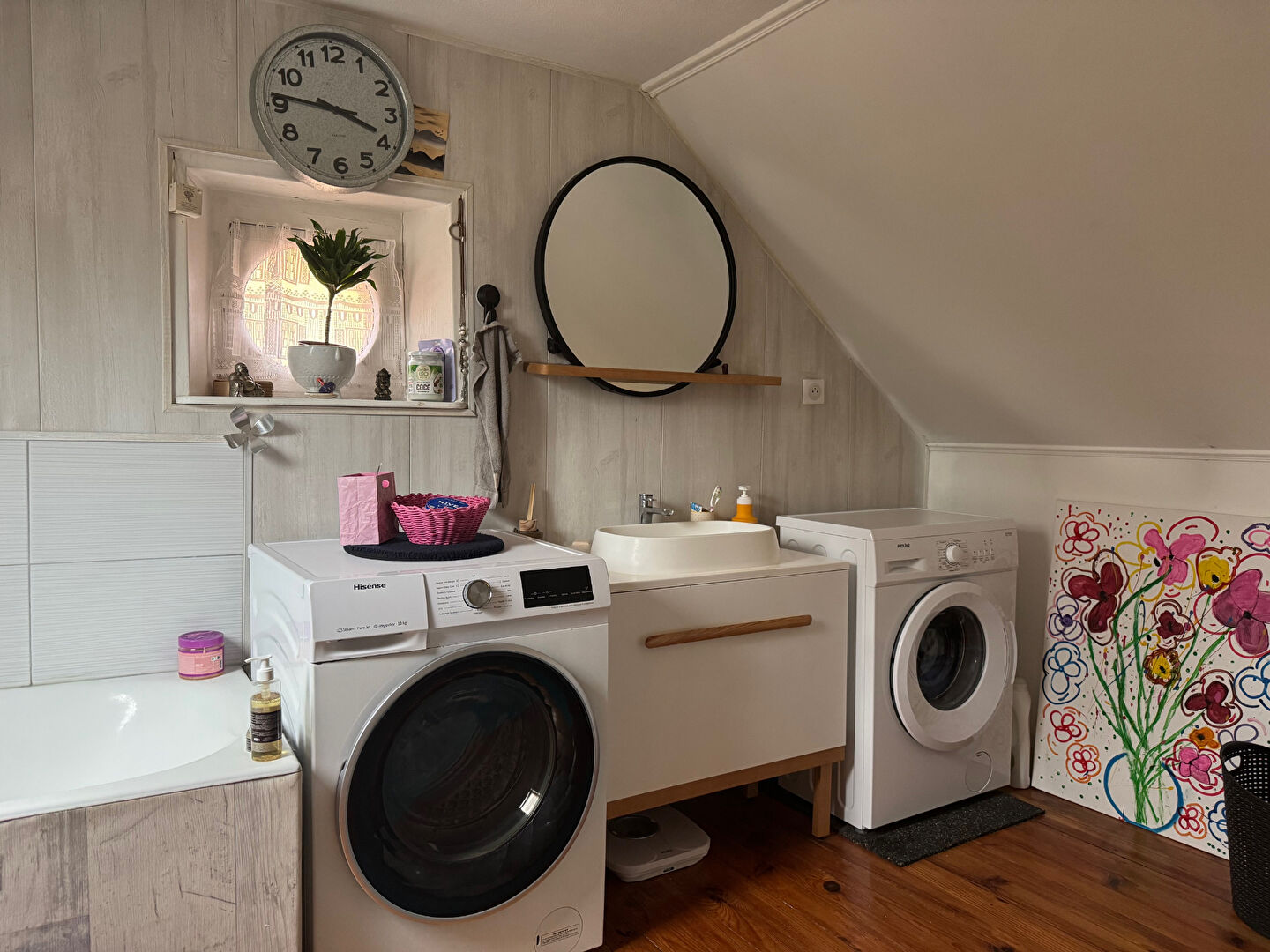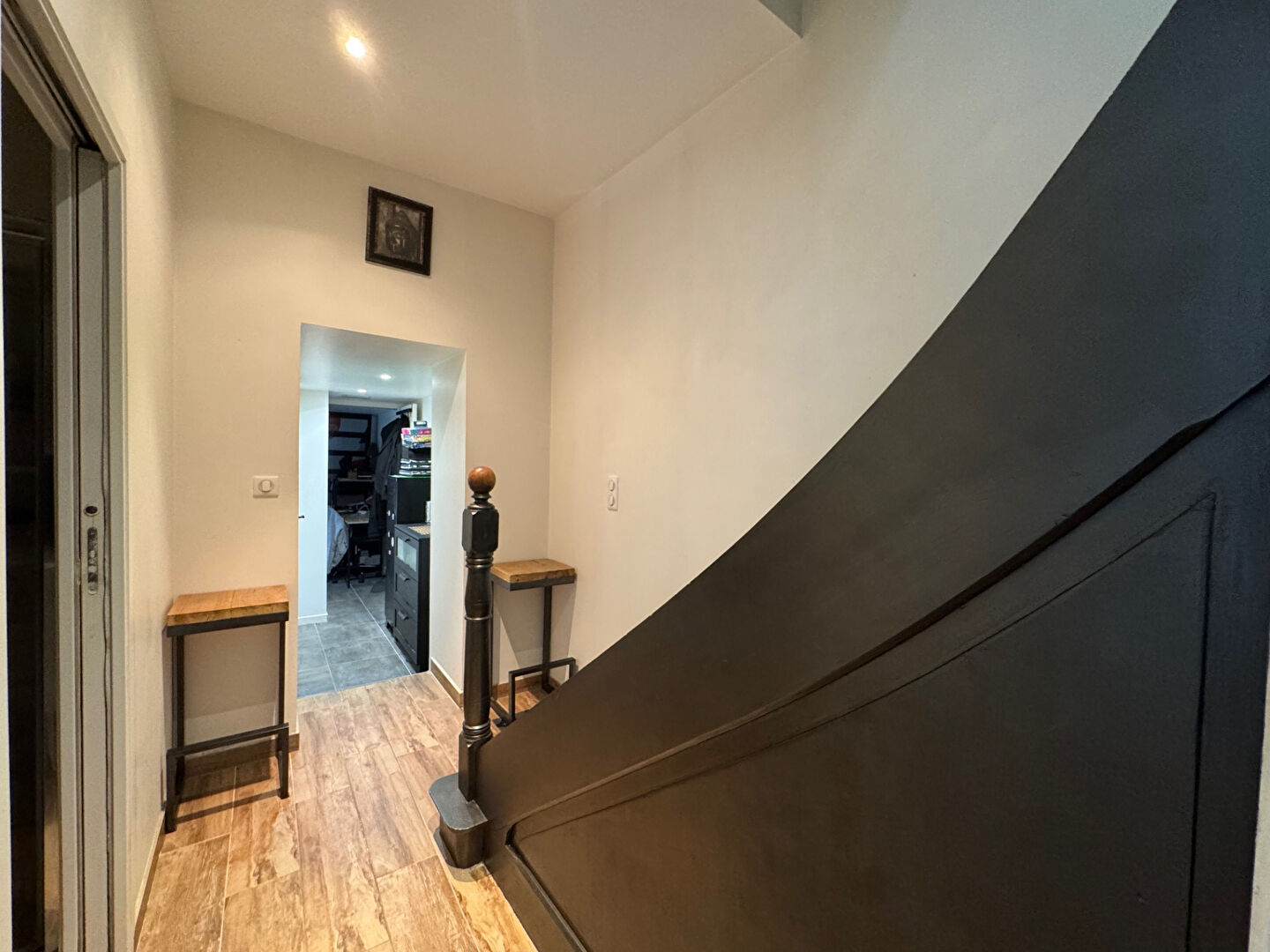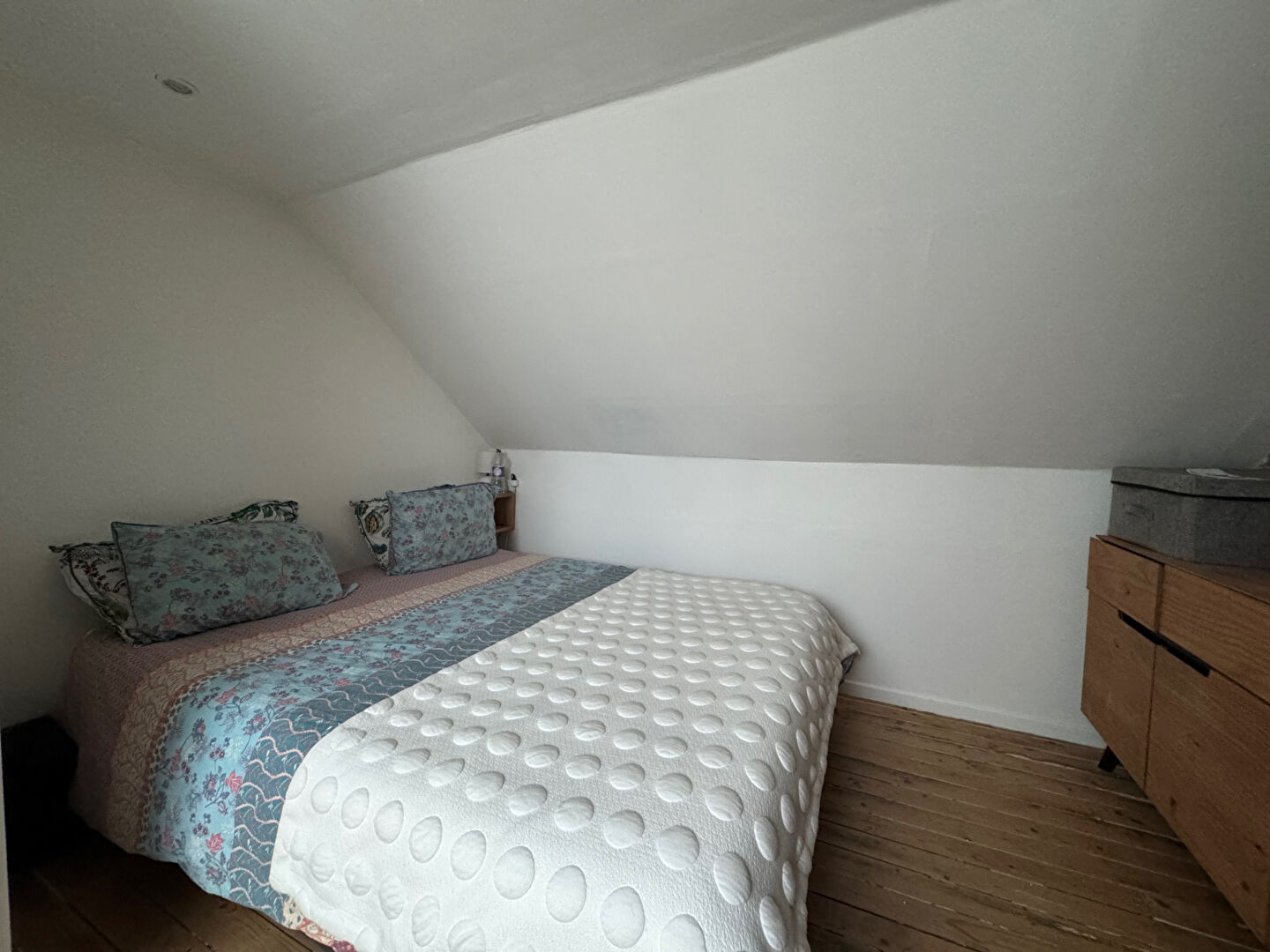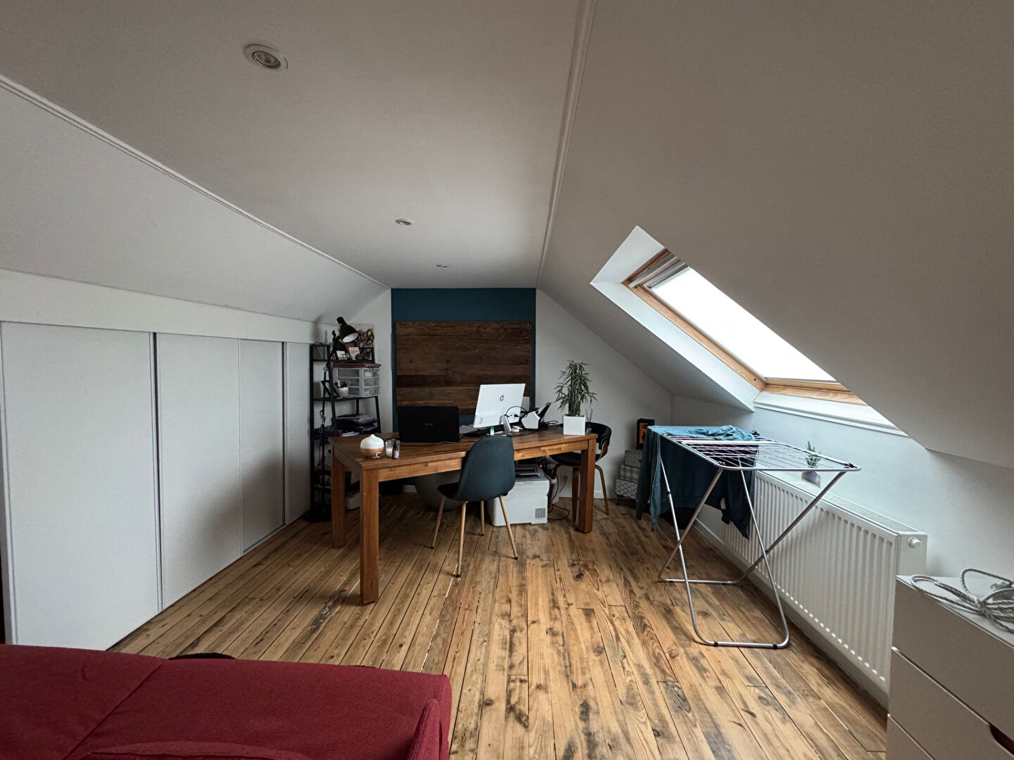 À l'étage, une salle de bain, un grand couloir, une alcôve cosy et une chambre avec placard complètent l'espace nuit. Ou grande suite parentale
