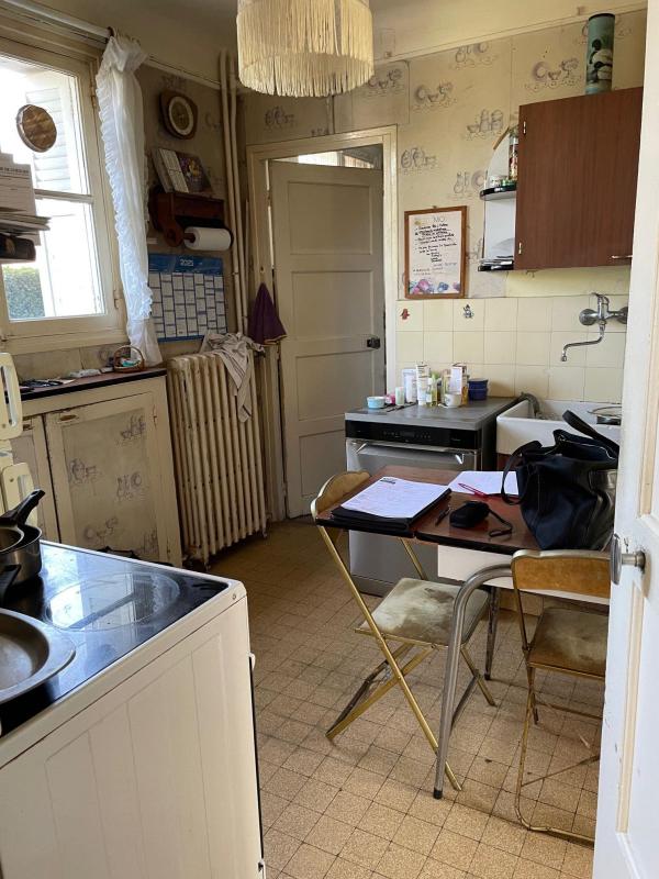 LE HAVRE-Aplemont-A Rénover - Maison construite en pierres meulière, couverte par un toit à une pente, édifiée sur un beau terrain plat comprenant : entrée, salle de séjour, cuisine, débarras, buanderie-chaufferie avec douche, WC . A l'étage : 3 chambres et cabinet de toilette .
