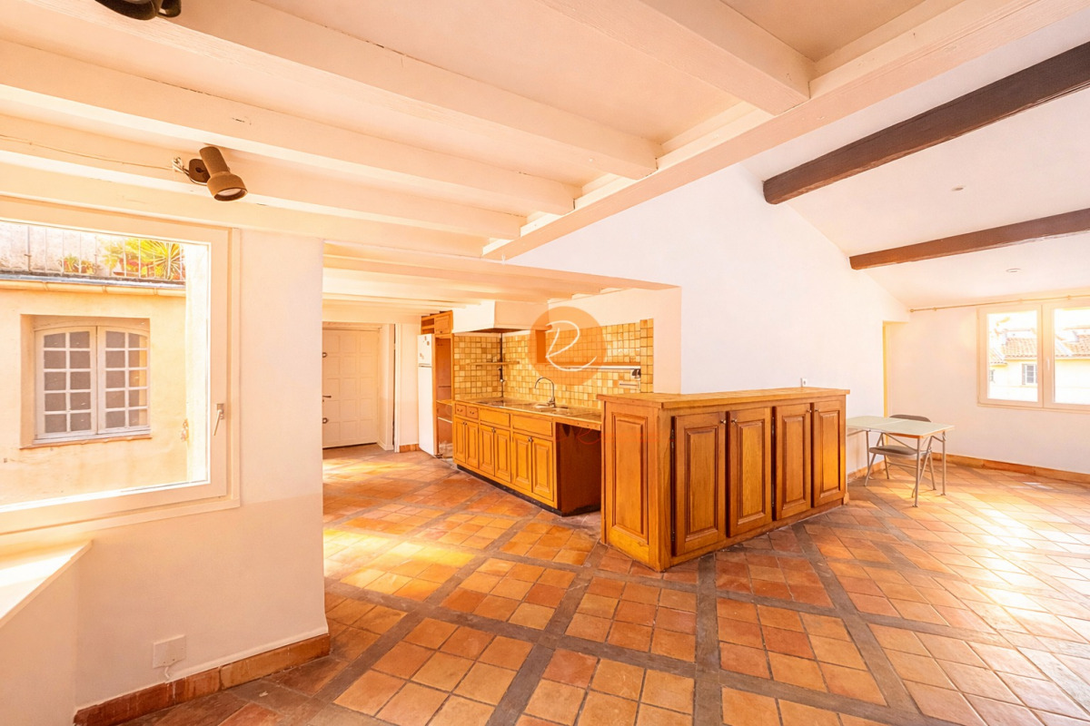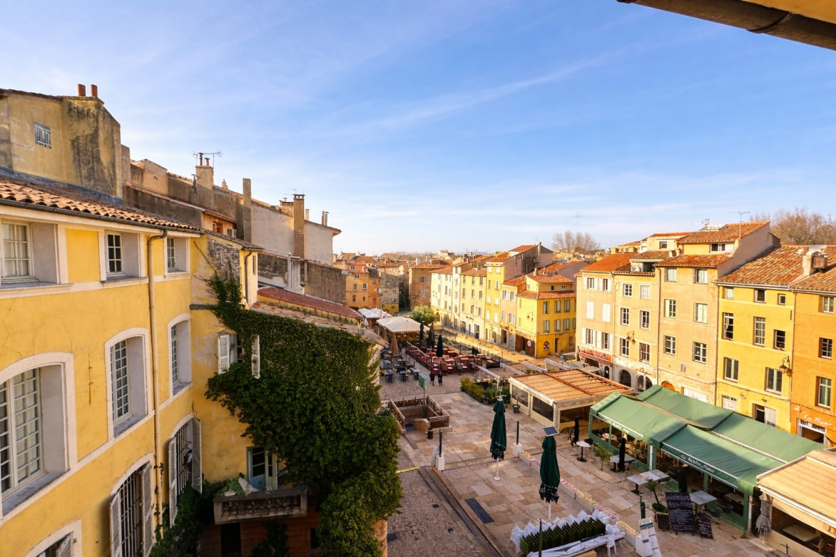 Aix centre, place des Cardeurs, au 4ème et dernier étage d'un très bel hôtel particulier se situe cet appartement de 87m2 habitables (86,75m2 loi carrez). L'habitation est composée d'une entrée, une cuisine, une belle et grande pièce de vie donnant sur la place des Cardeurs, 2 chambres, une salle d'eau, une salle de bain et une mezzanine avec salle d'eau. La vue est dégagée et dominante. Un rafraichissement est à prévoir.