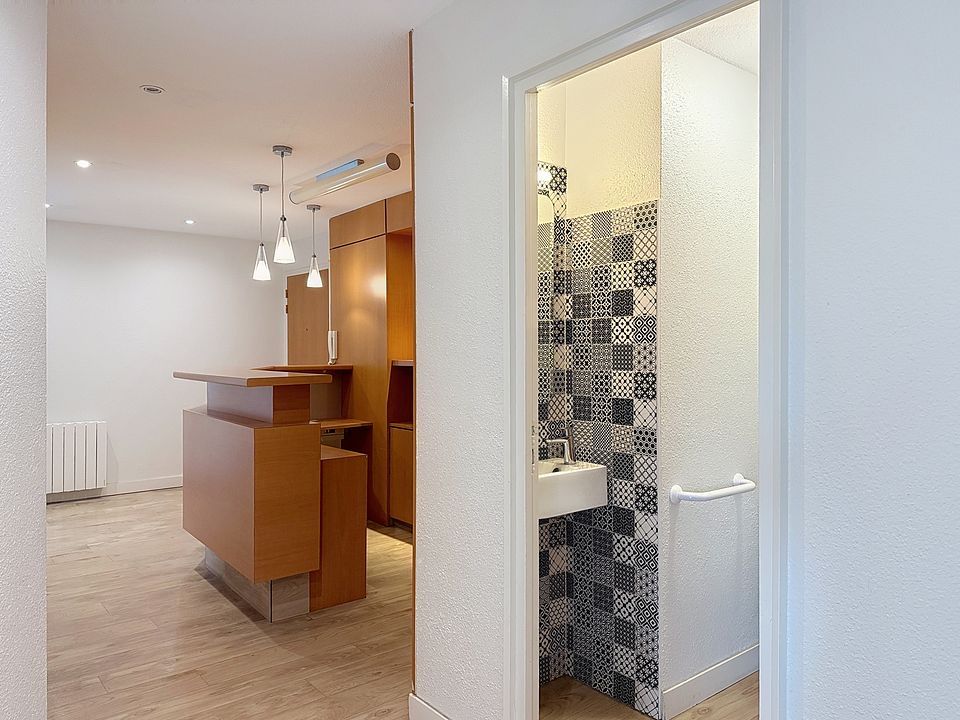 Aujourd'hui "salle d'attente, accueil, 2 salle de soins, salle de stérilisation, 2 bureaux, un local technique, WC"parkings.