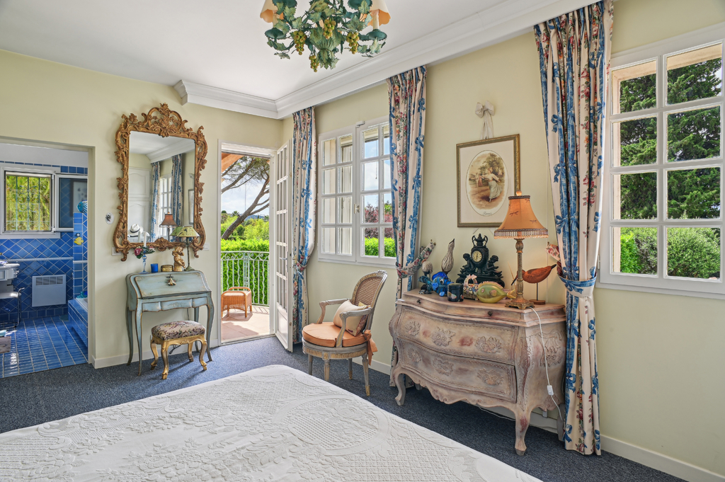 Sur deux niveaux, et composée de 5 pièces principales, elle dispose d'un chaleureux séjour de 45 m2 avec cheminée ouvrant sur la terrasse principale, le jardin et la piscine chauffée ; d'une cuisine indépendante équipée ; d'une chambre de maitre en suite avec balcon ; de 3 chambres invités et de deux salles de douches indépendantes.