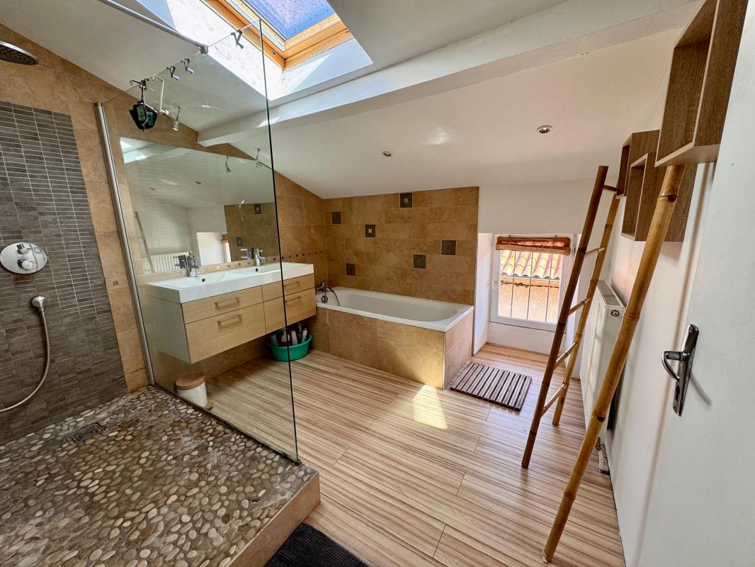 La salle d'eau contemporaine, équipée d'une élégante douche à l'italienne, apporte une touche raffinée au quotidien