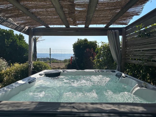 Un peu plus loin, un espace barbecue et pierrades pour de magnifiques repas entre amis ou en famille, au milieu d'une atmosphère zen de part le mobilier en bois de Suar, mais aussi par la verdure environnantes au milieu de laquelle un jacuzzi pour 6 personnes vous attends pour des instants suspendus d'où vous pouvez admirer des couchers de soleil inoubliables !