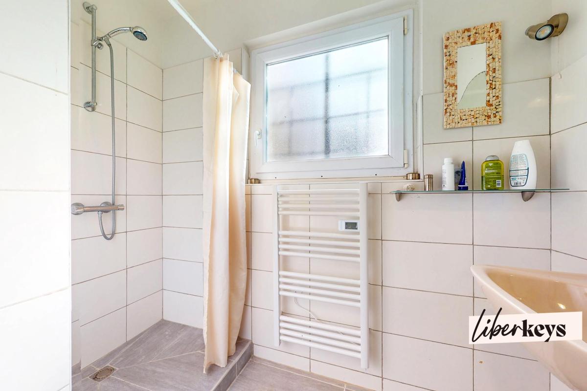 Trois chambres de 10, 13 et 16 m² composent l'espace nuit. L'une s'ouvre sur le jardin dès le matin. Salle d'eau avec douche à l'italienne, double vasque et WC. Une seconde salle d'eau avec dressing. Chaque espace trouve sa place.