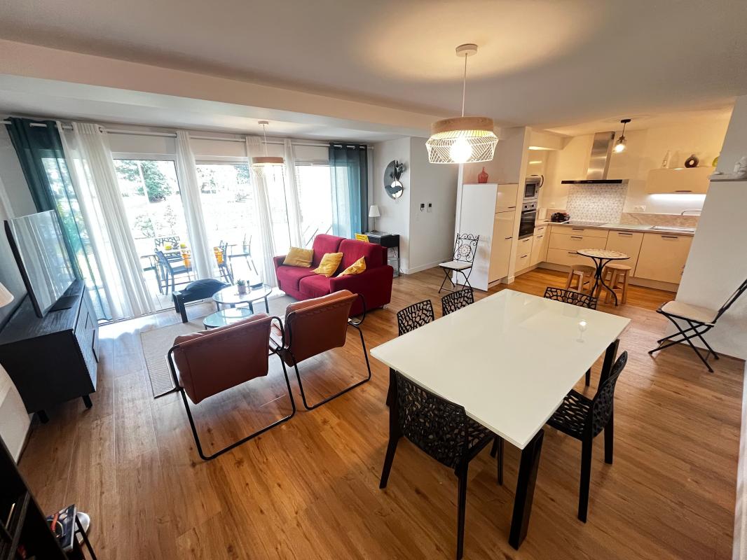 Mais le véritable privilège... une immense terrasse, véritable prolongement de l'espace de vie, idéale pour profiter du calme du parc et des belles soirées dacquoises.