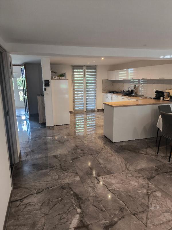 Au rez de chaussée, 2 salons ( dont un trés grand potentiellement transformable en appartement ) , salle d'eau et cuisine équipée.