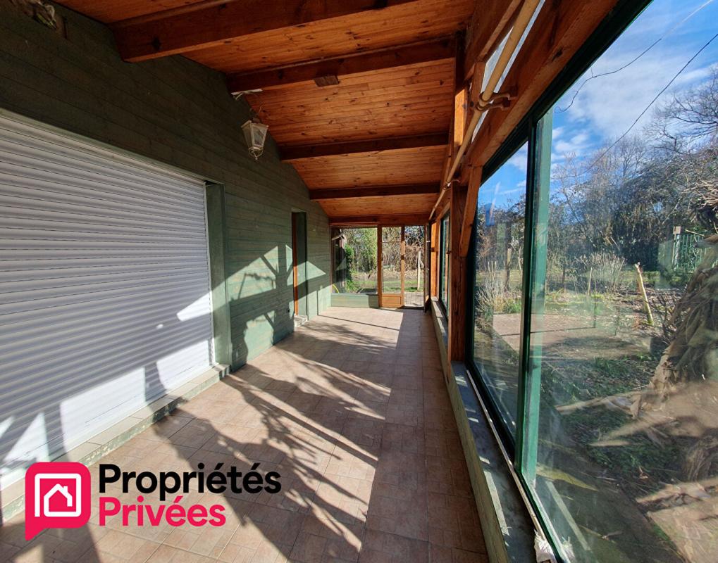 Elle se compose d'une pièce de vie lumineuse d'environ 40 m² avec insert à bois, baie vitrée sur véranda et accès extérieur.