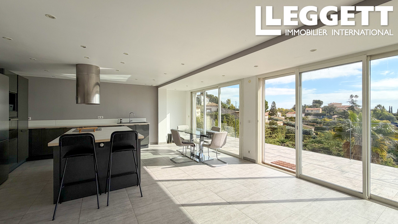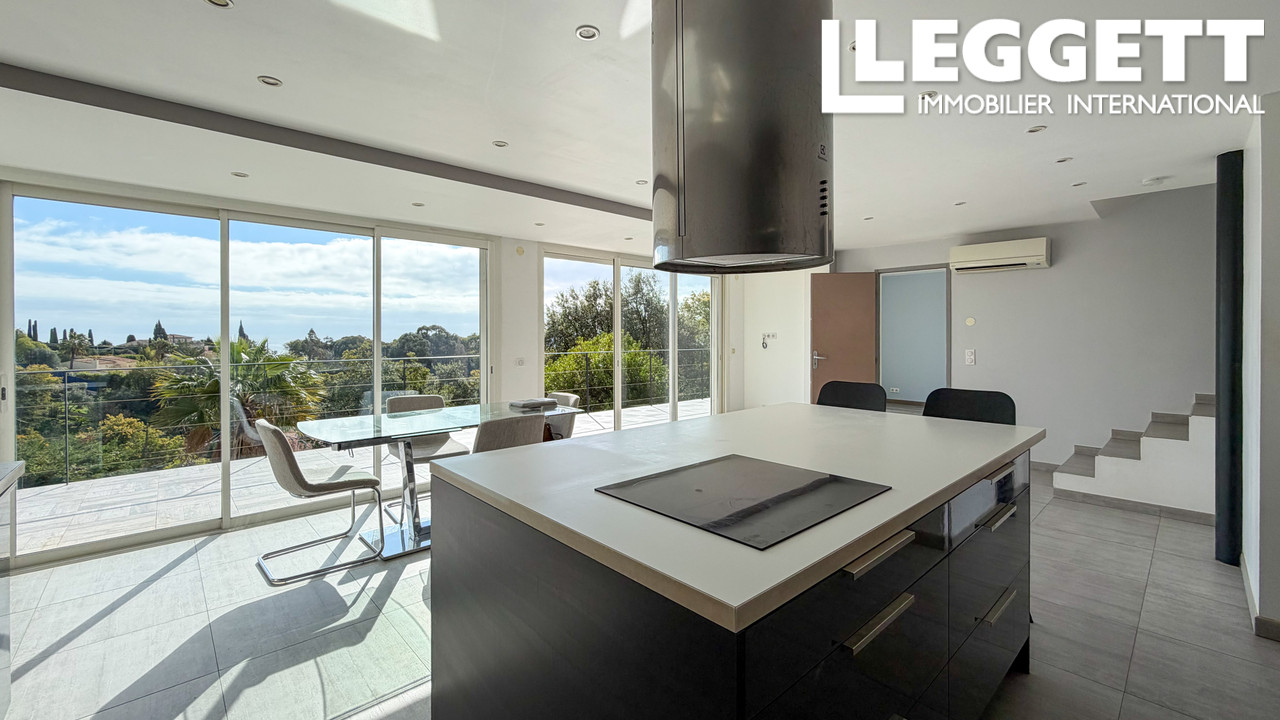 A43012JTO06 - Située à proximité des commodités locales, de l'autoroute A8 et des plages de Mandelieu-la-Napoule, cette villa individuelle bénéficie d'une vue panoramique imprenable sur la mer. L'étage supérieur comprend un hall d'entrée lumineux, deux chambres, une salle de bains familiale, une buanderie et un espace bureau ou salon, le tout ouvrant sur une grande terrasse. Le niveau inférieur comprend un spacieux salon ouvert et une cuisine avec un mur entier de portes donnant sur une autre terrasse offrant une vue imprenable, ainsi qu'une suite parentale avec dressing et salle d'eau. Les avantages comprennent la climatisation réversible, des panneaux solaires pour l'eau chaude, clôturer et tout-à-l'égout. Une opportunité rare dans un emplacement privilégié sur la Côte d'Azur, idéale comme résidence principale ou secondaire.