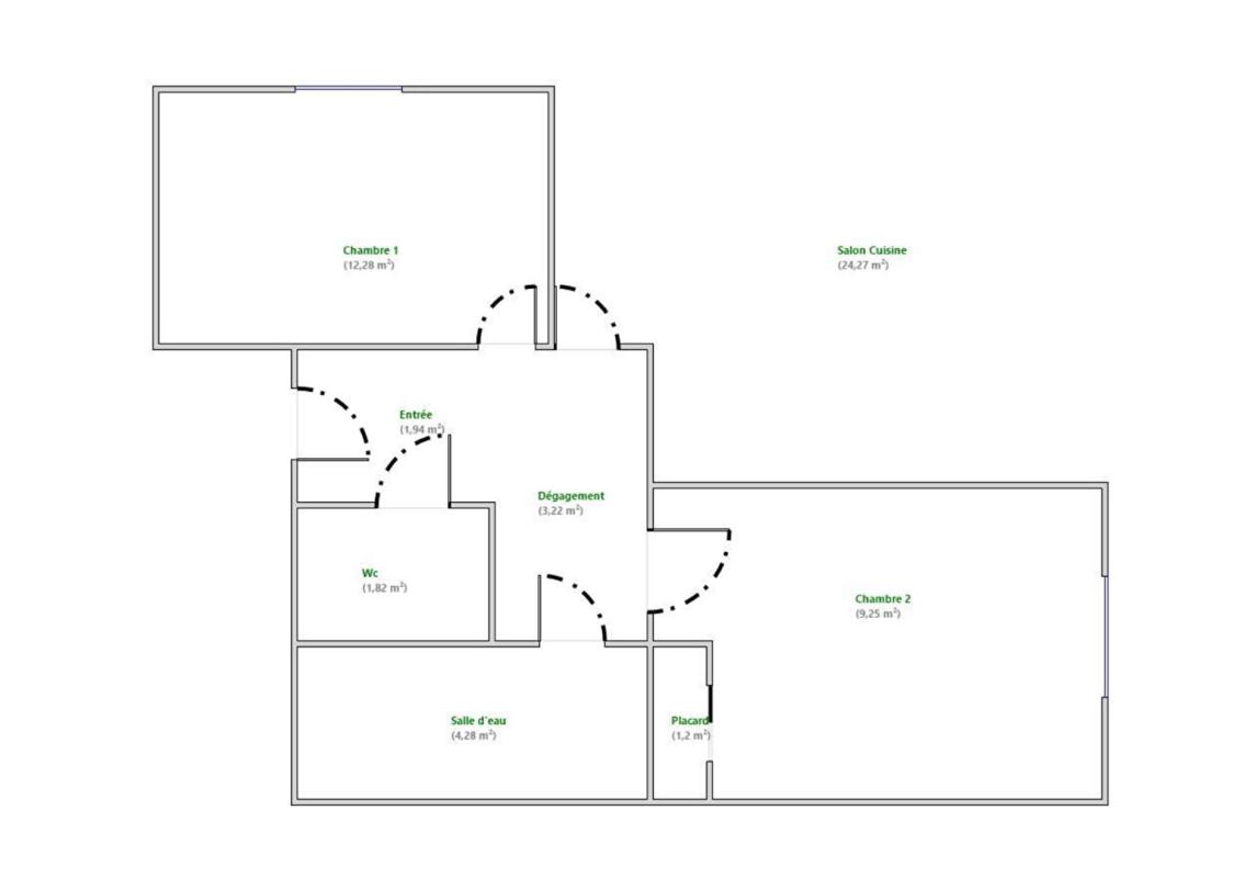 - Wc indépendant : 1,82 m2